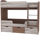 Двухъярусная кроватьМалыш двойняшкарешает проблему малого пространства сочетая в себе целый ряд функций: спальное место для двоих,вместительные выдвижные ящики под кроватью, а так же удобная лестница, обеспечивающая быстрый и безопасный доступ на второй этаж. На цветных фасадах: цвет кромки - бежевый. Матрасы приобретаются отдельно.Характеристики