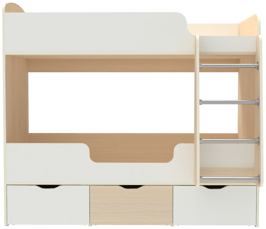 Двухъярусная кроватьМалыш двойняшкарешает проблему малого пространства сочетая в себе целый ряд функций: спальное место для двоих,вместительные выдвижные ящики под кроватью, а так же удобная лестница, обеспечивающая быстрый и безопасный доступ на второй этаж. На цветных фасадах: цвет кромки - бежевый. Матрасы приобретаются отдельно.Характеристики