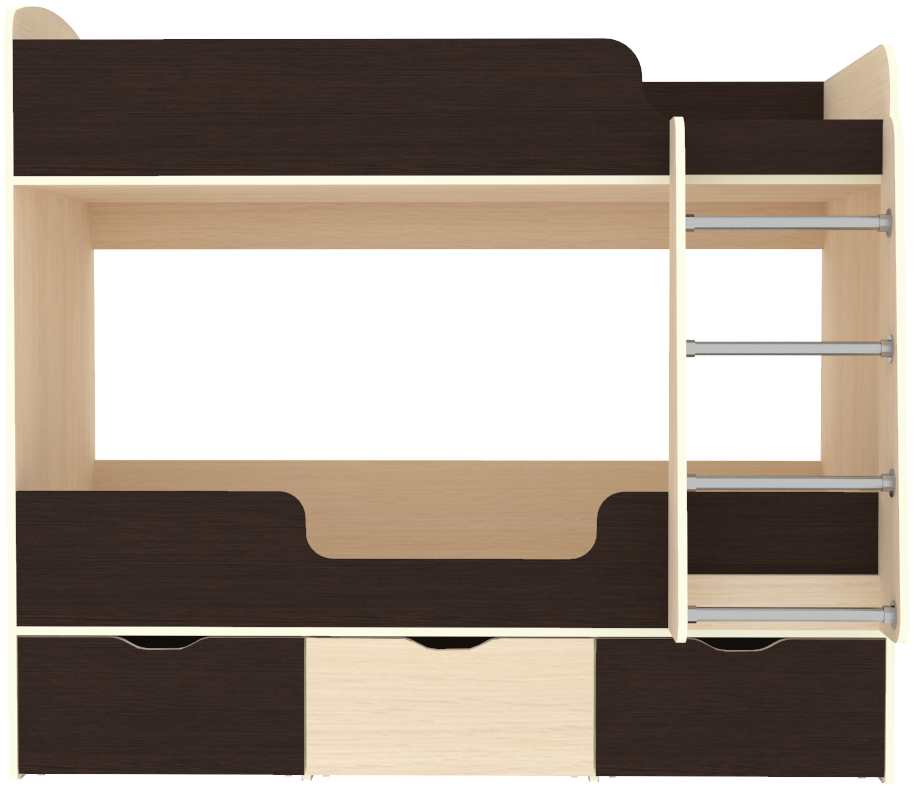 Двухъярусная кроватьМалыш двойняшкарешает проблему малого пространства сочетая в себе целый ряд функций: спальное место для двоих,вместительные выдвижные ящики под кроватью, а так же удобная лестница, обеспечивающая быстрый и безопасный доступ на второй этаж. На цветных фасадах: цвет кромки - бежевый. Матрасы приобретаются отдельно.Характеристики