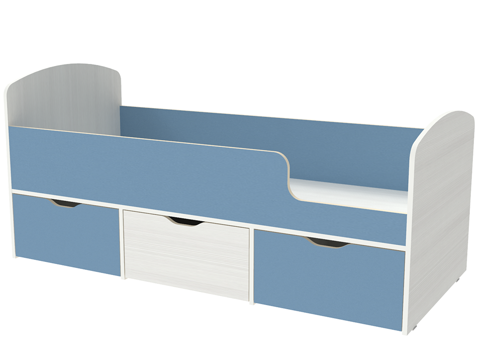 Кровать Малыш Мини Белое Дерево Светло-синий, голубой