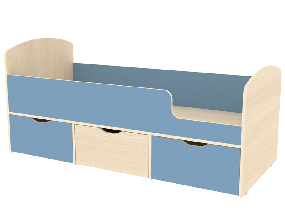 Кровать Малыш Мини Дуб Молочный Светло-синий, голубой