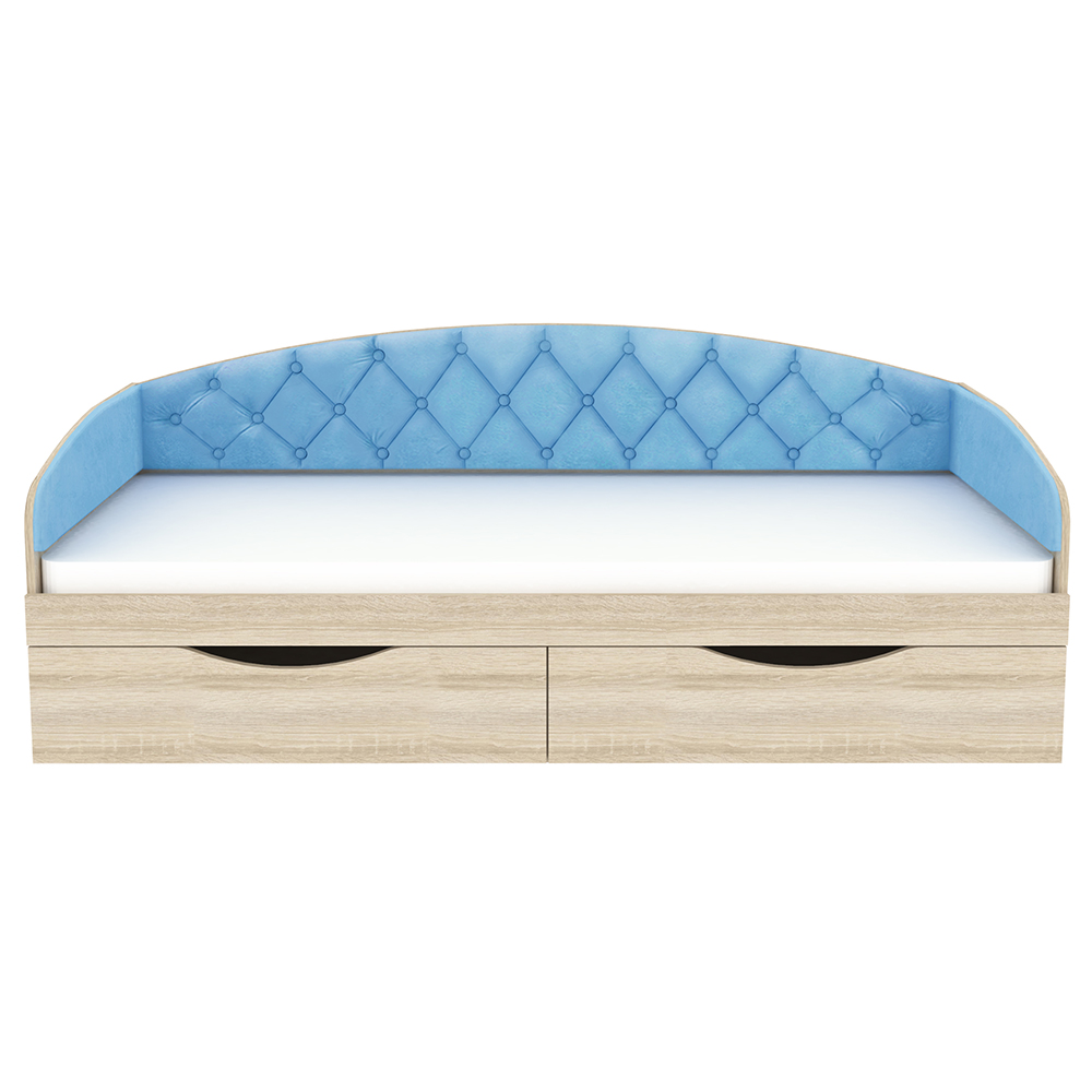 Кровать односпальная Беллуччи с каретной стяжкой 80х190 Дуб Сонома Светло-синий, голубой