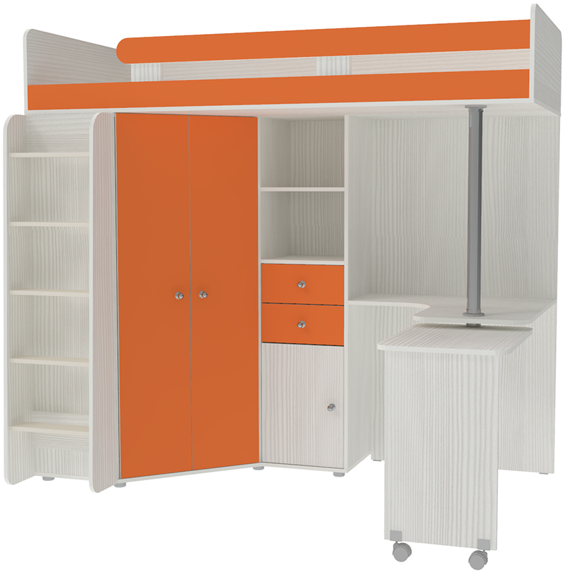 М85 Кровать-чердак Белое Дерево Оранжевый