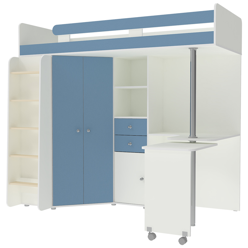 М85 Кровать-чердак Белый Светло-синий, голубой