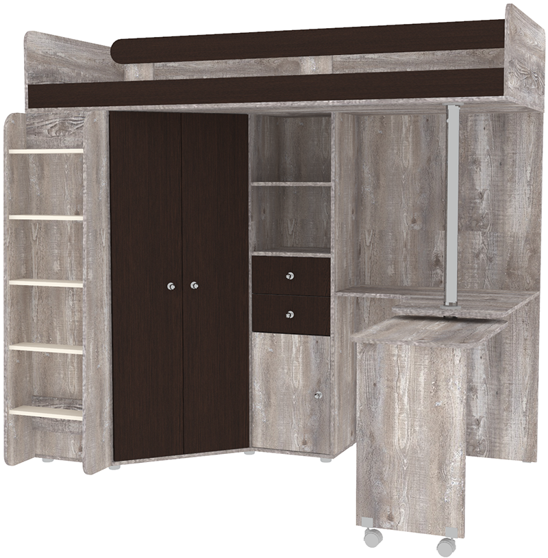 Вы можете купить Кровать-чердак КарИВи М85 Бетон Венге оптом в нашем магазине, предложим цену с оптовой скидкой.