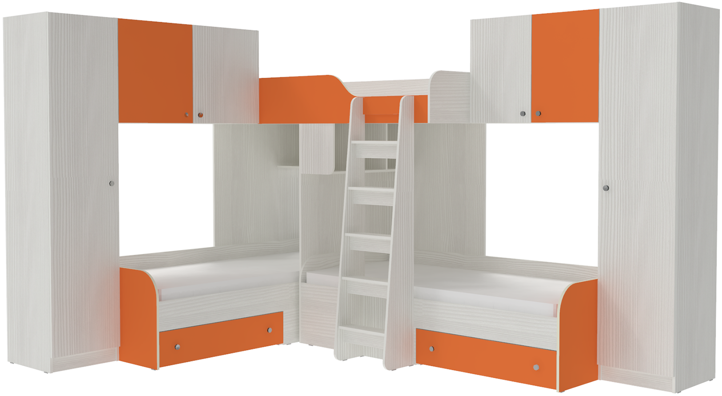 Трехместная кровать Трио 3 Белое Дерево Оранжевый