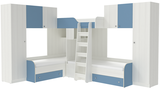 Вы можете купить Трехместная кровать КарИВи Трио 3 Белое Дерево Светло-синий, голубой оптом в нашем магазине, предложим цену с оптовой скидкой.