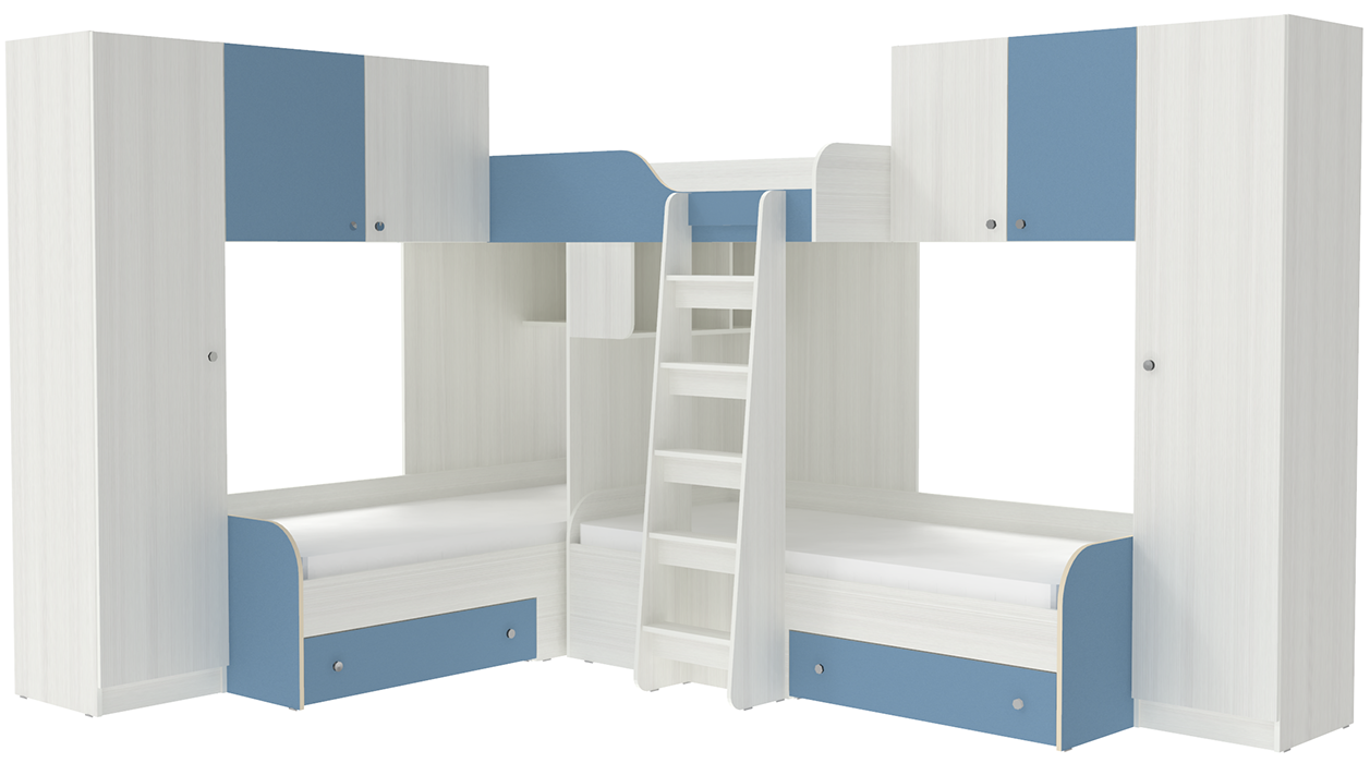 Трехместная кровать Трио 3 Белое Дерево Светло-синий, голубой