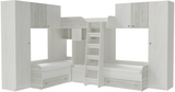 Трехместная кровать с полноценными спальными местами стала еще вместительнее. Два больших шкафа с каждой стороны позволять разместить теперь точно все вещи Ваших детей.Характеристики