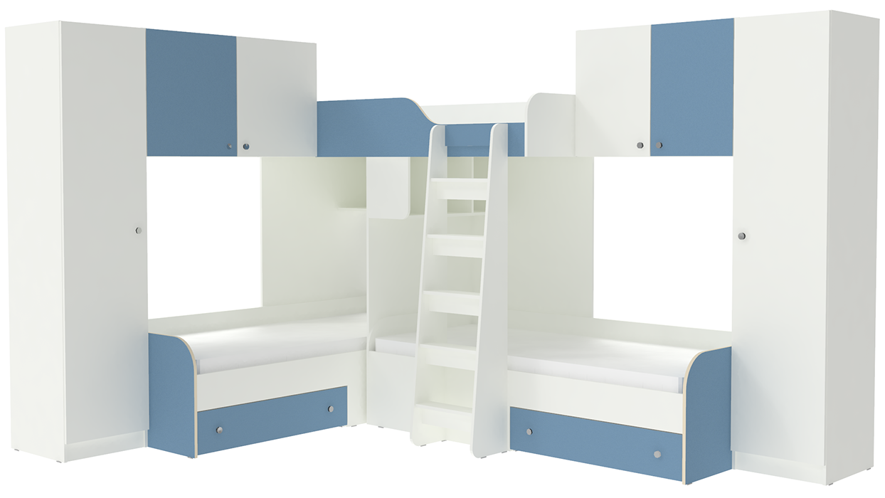 Трехместная кровать Трио 3 Белый Светло-синий, голубой