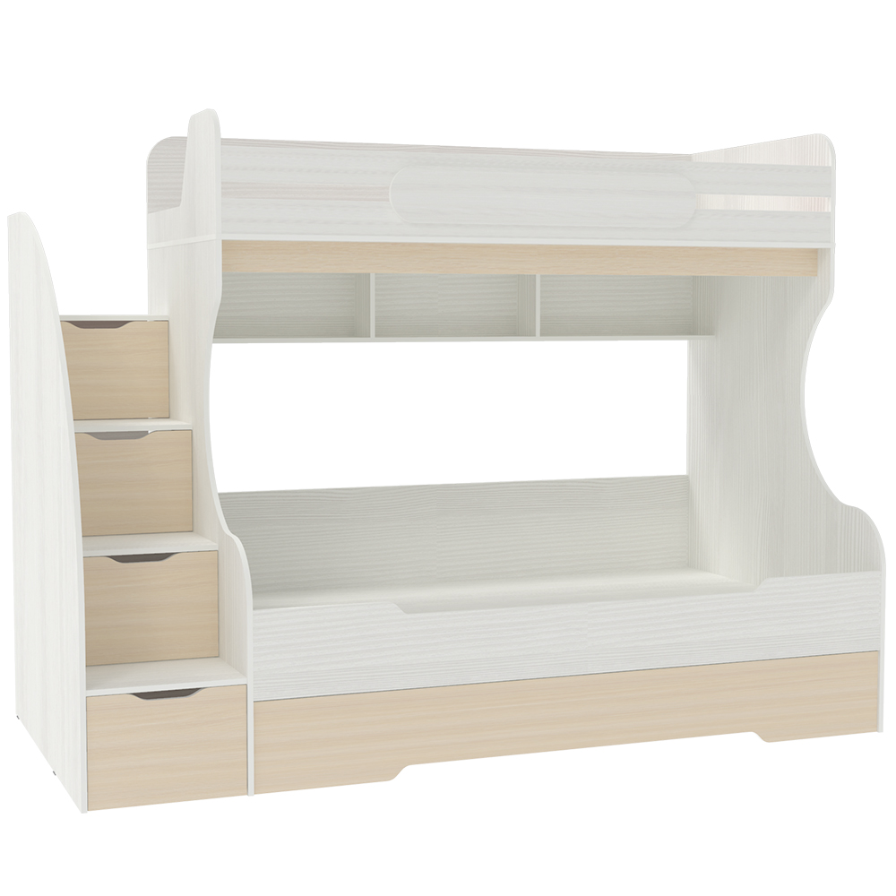 Трехъярусная кровать БИГ Белое Дерево Дуб Молочный