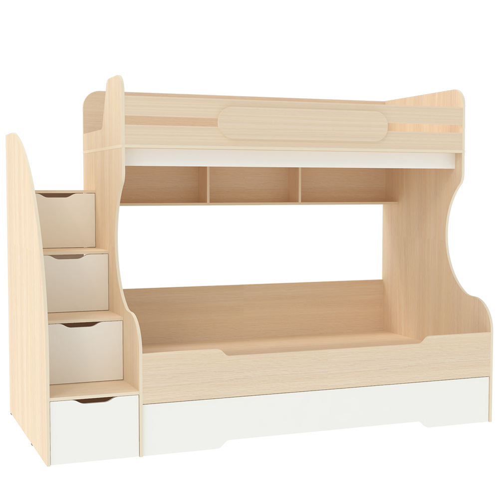 Трехъярусная кровать БИГ Дуб Молочный Белый