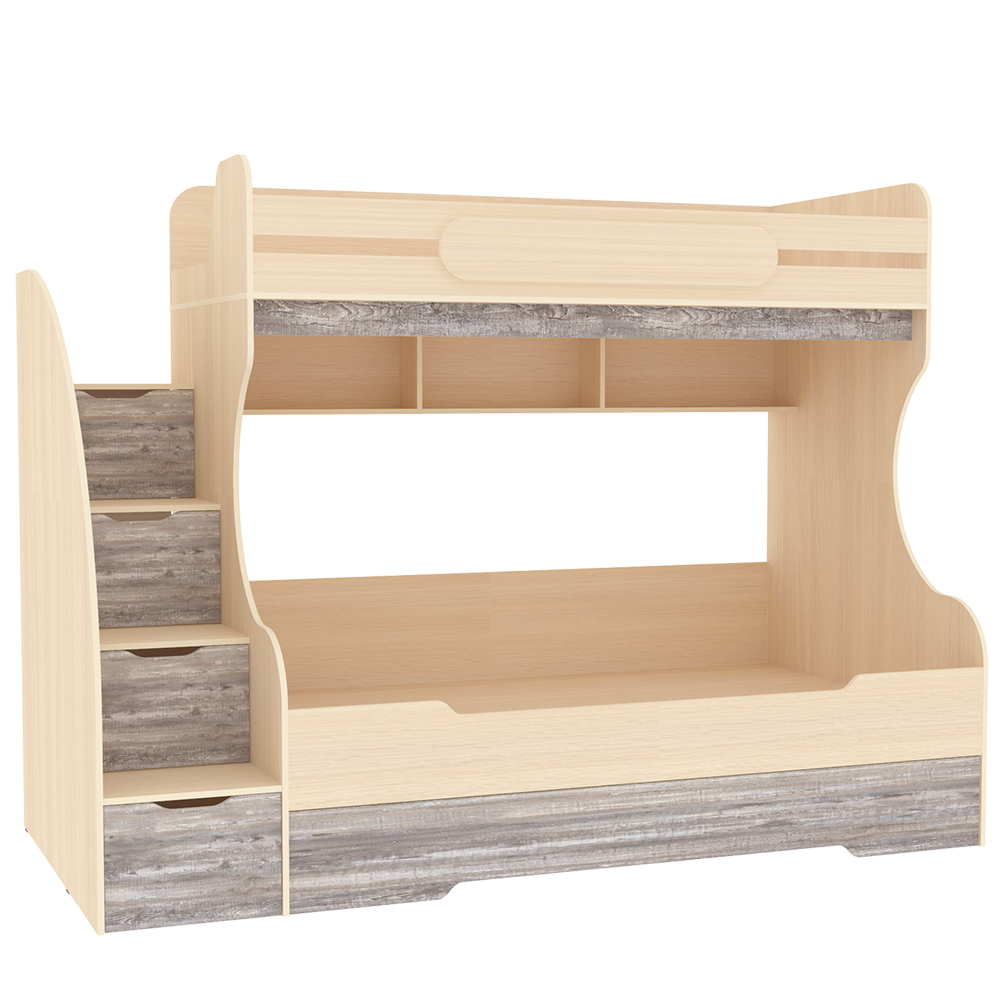 Трехъярусная кровать БИГ Дуб Молочный Бетон