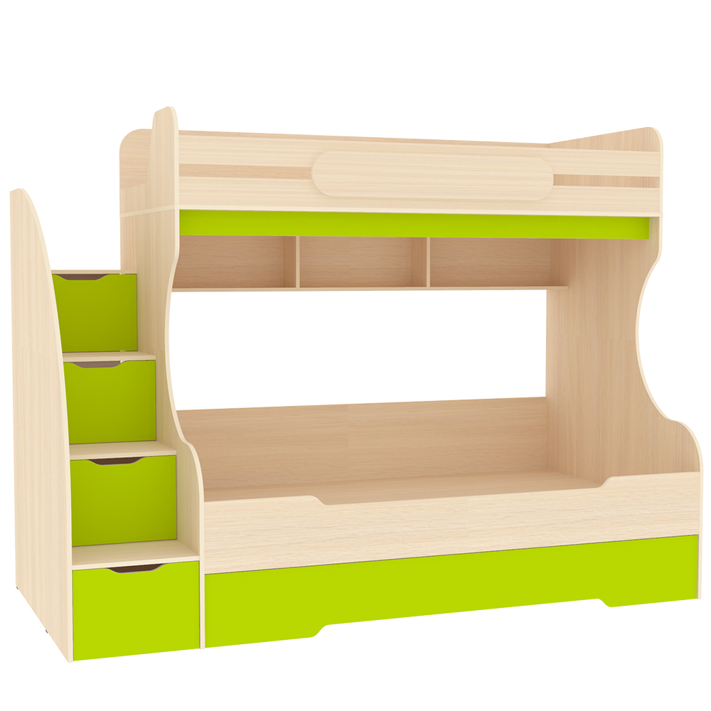 Трехъярусная кровать БИГ Дуб Молочный Лайм