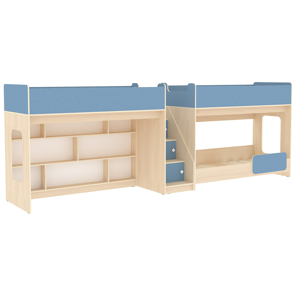 Вы можете купить Трехъярусная кровать КарИВи Л-43.4.2 Дуб Молочный Светло-синий, голубой оптом в нашем магазине, предложим цену с оптовой скидкой.