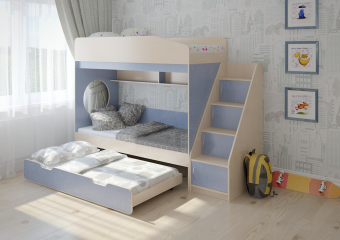 Вы можете купить Трехъярусная кровать КарИВи Легенда 10.5 Дуб Молочный Светло-синий, голубой оптом в нашем магазине, предложим цену с оптовой скидкой.