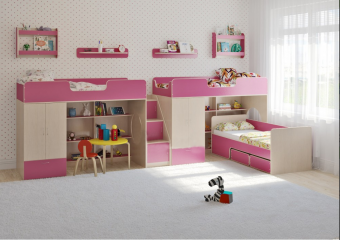 Трехъярусная кроватьЛ-3.15 - вместительный комплект для троих детей по оптимальной цене. В комплект входит: Две кровати-чердакаЛ-3с большим спальным местом1800х800. Под спальными местами располагаетсяигровая зона– свой уголок для ребенка. В игровой зоне располагаетсястеллаж,отлично подходящий для хранения игрушек.Стеллаж состоит из трех полок,разделенных на две секции – удобно для поддержания порядка и сортировки предметов. Вместительный шкафдля хранения одежды,белья,игрушек или иных вещей.Внизу шкафа располагаетсявыкатной ящик,в котором можно хранить отдельно мелкие предметы.Расположение ящика позволяет ребенку легко извлекать необходимые вещи самостоятельно. Световое окно- дополнительное освещение,элемент для игры и возможность родителям наблюдать за ребенком. Между кроватями удобно расположиласьугловая лестница ЛУ-11 из трех ступенек. Лестница одновременно выполняет функциюстеллажа.В комплект входят фасады,таким образом получаются полноценные полки с дверками какдополнительное место для хранения. Две полки Л-01– простые одноярусные - идве полки Л-02- оригинальные двухъярусные полки с бортиками – отлично дополнят пространство над спальным местом кровати-чердака. С помощью полок организуетсямасса дополнительных мест для хранениябез ущерба для пространства! Удивительнаякровать-трансформер Л-40- четыре варианта сборки! Спальное место 1750х700. Высота всего 68см– легко забираться на кровать,её можно без труда заправить,всегда можно взглянуть на спящего малыша. Длинные бортики можно поставить в необходимое вам положение: Вариант «Тахта»- Оба бортика опускаем вниз – получаем тахту без боковых бортов. Вариант «Канапе»- Сплошной бортик опускаем,а бортик с выемкой устанавливаем наверх.Получается модное стильное канапе с одним бортиком. Вариант «Кроватка»- Оба бортика устанавливаем наверх – закрываем со всех сторон,максимально обезопасивребенка.На переднем бортике остается выемка,чтобы было удобно залезать и слезать. Вариант «Диванчик»- Сплошной бортик устанавливаем наверх как спинку,а бортик с выемкой оставляем внизу,освободив пространство с одной стороны. Два удобных ящика на колёсиках.Ящики легко закатываются и выкатываются,с этим без труда справится ребенок. Отличные помощникив решение вопросахранения игрушек и других вещей.Ящики идеально помещаются под фигурный бортик в вариантах «Тахта» и «Диванчик»,а если бортик поднят наверх – остается свободное пространство,которое можно использовать по вашему усмотрению. Боковые бортики и мягкий противоударный кант– дополнительная безопасность для детей. Модель универсальна - сторона определяется при сборке. Матрасы в комплект не входят - приобретаются отдельно.Характеристики