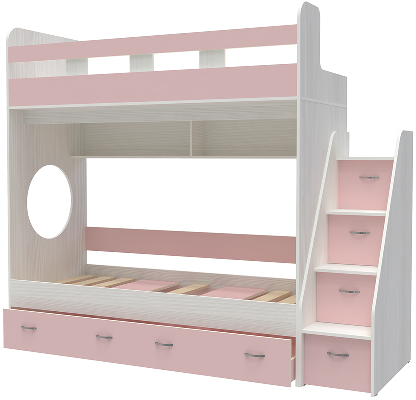 Трехъярусная кровать Юниор Белое Дерево Розовый