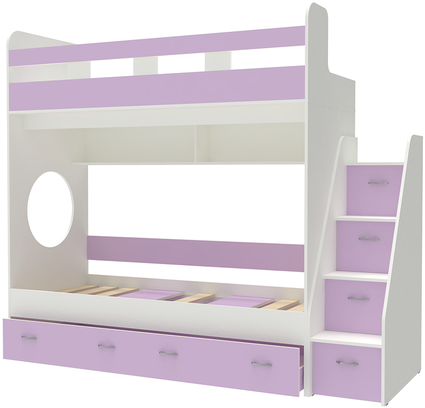 Трехъярусная кровать чердак Юниоррешает проблему малого пространства сочетая в себе целый ряд функций: спальные места для троих, навесная полка для книг и игрушек, вместительный выдвижной ящикпод кроватью может использоваться для хранения или как дополнительное спальное место, а так же приставная лестница расположенная сбоку, обеспечивающая быстрый и безопасный доступ на второй этаж, с безопасными ступенями в виде выдвижных ящиков. Дополнительный бортик для нижнего яруса покупается отдельно!!! Ступеньки лестницы представляют собой небольшие ящички, в которые можно сложить нижнее белье ребенка, игрушки и иные вещи.Уникальность Юниор заключается в: Цене Компактности Безопасности Надёжности Функциональности.Мебель изготовлена из ламинированного ДСП, с использованием кромки АБС, что позволяет продлить срок службы изделия и сохранить внешний вид. Отсутствие острых углов является самым главным критерием травмобезопасности детей. Кровать выполнена из надежной 16мм ламинированной ДСП. Все торцы мебели обрамлены кромкой ABS 1мм. На цветных фасадах светло-бежевая кромка. Сборка универсальная, лестница может быть справа и слева. Спальное место 1900х800мм. Материал – ЛДСП. Мебель соответствует высоким стандартам качества и безопасности. Вся мебель сертифицирована и выполнена из экологически чистого материала. Двухъярусная кровать ЮНИОРявляясь одновременно яркой, функциональной и универсальной мебелью, займет почтенное место в детской. *Предприятие-изготовитель оставляет за собой право вносить изменения в конструкцию изделия с целью улучшения технологических и эксплуатационных свойств мебели. Матрасы для кровати вы можете приобрести отдельно в разделедетских матрасов. Так же мы предлагаем ниже, в разделе Аксессуары, наиболее оптимальные варианты для данной кровати.