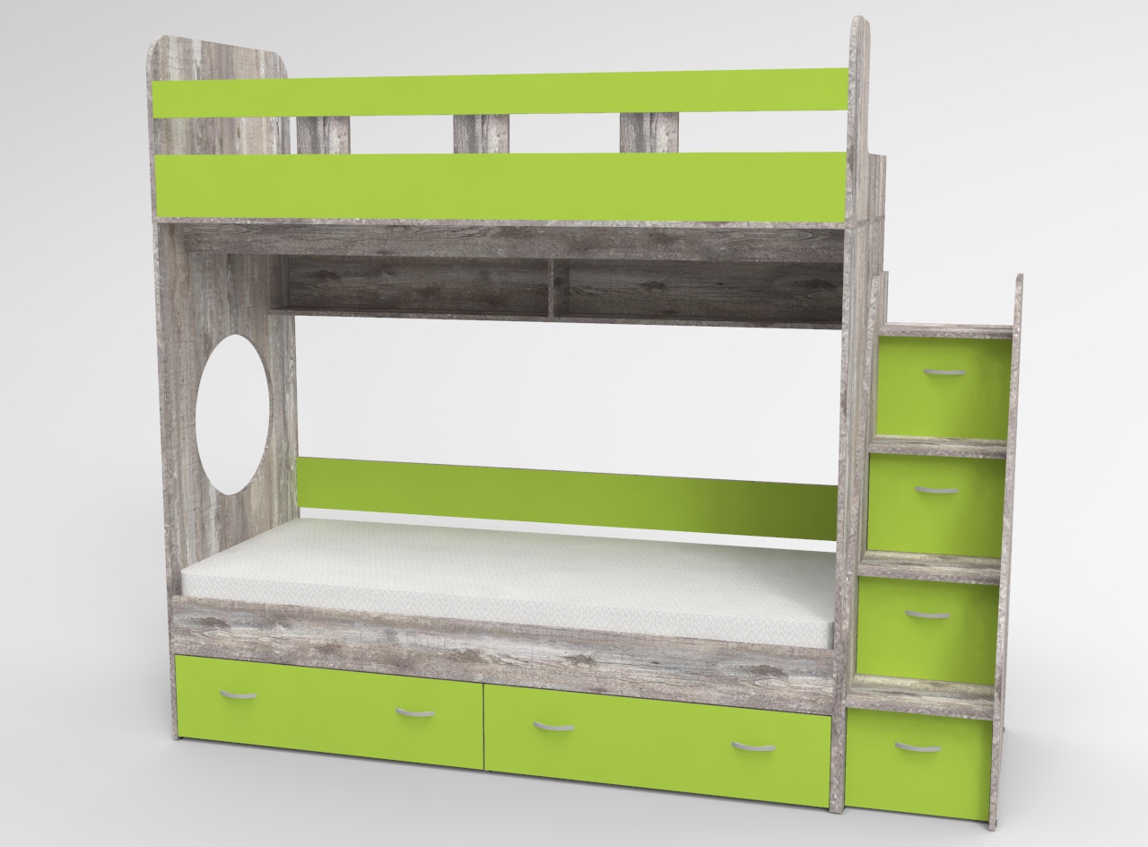Трехъярусная кровать Юниор Бетон Лайм