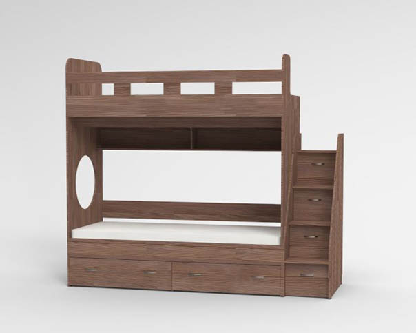 Трехъярусная кровать чердак Юниоррешает проблему малого пространства сочетая в себе целый ряд функций: спальные места для троих, навесная полка для книг и игрушек, вместительный выдвижной ящикпод кроватью может использоваться для хранения или как дополнительное спальное место, а так же приставная лестница расположенная сбоку, обеспечивающая быстрый и безопасный доступ на второй этаж, с безопасными ступенями в виде выдвижных ящиков. Дополнительный бортик для нижнего яруса покупается отдельно!!! Ступеньки лестницы представляют собой небольшие ящички, в которые можно сложить нижнее белье ребенка, игрушки и иные вещи.Уникальность Юниор заключается в: Цене Компактности Безопасности Надёжности Функциональности.Мебель изготовлена из ламинированного ДСП, с использованием кромки АБС, что позволяет продлить срок службы изделия и сохранить внешний вид. Отсутствие острых углов является самым главным критерием травмобезопасности детей. Кровать выполнена из надежной 16мм ламинированной ДСП. Все торцы мебели обрамлены кромкой ABS 1мм. На цветных фасадах светло-бежевая кромка. Сборка универсальная, лестница может быть справа и слева. Спальное место 1900х800мм. Материал – ЛДСП. Мебель соответствует высоким стандартам качества и безопасности. Вся мебель сертифицирована и выполнена из экологически чистого материала. Двухъярусная кровать ЮНИОРявляясь одновременно яркой, функциональной и универсальной мебелью, займет почтенное место в детской. *Предприятие-изготовитель оставляет за собой право вносить изменения в конструкцию изделия с целью улучшения технологических и эксплуатационных свойств мебели. Матрасы для кровати вы можете приобрести отдельно в разделедетских матрасов. Так же мы предлагаем ниже, в разделе Аксессуары, наиболее оптимальные варианты для данной кровати.
