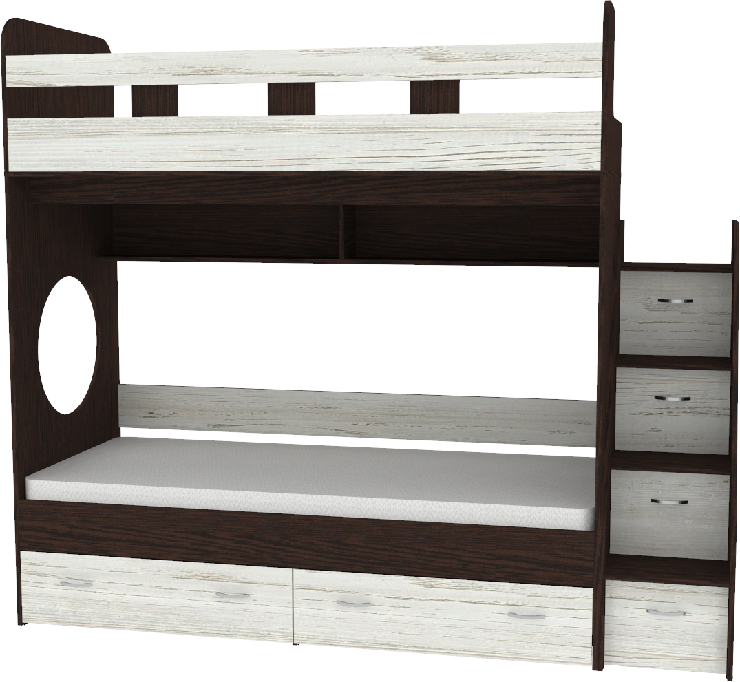 Трехъярусная кровать чердак Юниоррешает проблему малого пространства сочетая в себе целый ряд функций: спальные места для троих, навесная полка для книг и игрушек, вместительный выдвижной ящикпод кроватью может использоваться для хранения или как дополнительное спальное место, а так же приставная лестница расположенная сбоку, обеспечивающая быстрый и безопасный доступ на второй этаж, с безопасными ступенями в виде выдвижных ящиков. Дополнительный бортик для нижнего яруса покупается отдельно!!! Ступеньки лестницы представляют собой небольшие ящички, в которые можно сложить нижнее белье ребенка, игрушки и иные вещи.Уникальность Юниор заключается в: Цене Компактности Безопасности Надёжности Функциональности.Мебель изготовлена из ламинированного ДСП, с использованием кромки АБС, что позволяет продлить срок службы изделия и сохранить внешний вид. Отсутствие острых углов является самым главным критерием травмобезопасности детей. Кровать выполнена из надежной 16мм ламинированной ДСП. Все торцы мебели обрамлены кромкой ABS 1мм. На цветных фасадах светло-бежевая кромка. Сборка универсальная, лестница может быть справа и слева. Спальное место 1900х800мм. Материал – ЛДСП. Мебель соответствует высоким стандартам качества и безопасности. Вся мебель сертифицирована и выполнена из экологически чистого материала. Двухъярусная кровать ЮНИОРявляясь одновременно яркой, функциональной и универсальной мебелью, займет почтенное место в детской. *Предприятие-изготовитель оставляет за собой право вносить изменения в конструкцию изделия с целью улучшения технологических и эксплуатационных свойств мебели. Матрасы для кровати вы можете приобрести отдельно в разделедетских матрасов. Так же мы предлагаем ниже, в разделе Аксессуары, наиболее оптимальные варианты для данной кровати.