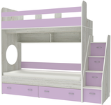 Трехъярусная кровать чердак Юниоррешает проблему малого пространства сочетая в себе целый ряд функций: спальные места для троих, навесная полка для книг и игрушек, вместительный выдвижной ящикпод кроватью может использоваться для хранения или как дополнительное спальное место, а так же приставная лестница расположенная сбоку, обеспечивающая быстрый и безопасный доступ на второй этаж, с безопасными ступенями в виде выдвижных ящиков. Дополнительный бортик для нижнего яруса покупается отдельно!!! Ступеньки лестницы представляют собой небольшие ящички, в которые можно сложить нижнее белье ребенка, игрушки и иные вещи.Уникальность Юниор заключается в: Цене Компактности Безопасности Надёжности Функциональности.Мебель изготовлена из ламинированного ДСП, с использованием кромки АБС, что позволяет продлить срок службы изделия и сохранить внешний вид. Отсутствие острых углов является самым главным критерием травмобезопасности детей. Кровать выполнена из надежной 16мм ламинированной ДСП. Все торцы мебели обрамлены кромкой ABS 1мм. На цветных фасадах светло-бежевая кромка. Сборка универсальная, лестница может быть справа и слева. Спальное место 1900х800мм. Материал – ЛДСП. Мебель соответствует высоким стандартам качества и безопасности. Вся мебель сертифицирована и выполнена из экологически чистого материала. Двухъярусная кровать ЮНИОРявляясь одновременно яркой, функциональной и универсальной мебелью, займет почтенное место в детской. *Предприятие-изготовитель оставляет за собой право вносить изменения в конструкцию изделия с целью улучшения технологических и эксплуатационных свойств мебели. Матрасы для кровати вы можете приобрести отдельно в разделедетских матрасов. Так же мы предлагаем ниже, в разделе Аксессуары, наиболее оптимальные варианты для данной кровати.