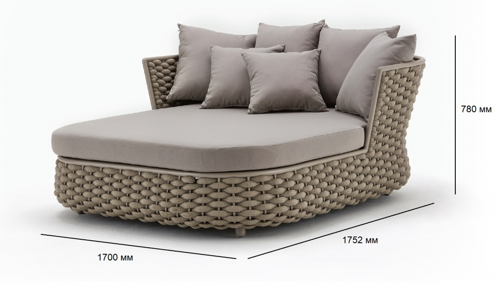 Продажа данной модели осуществляется оптом от 6 шт. Коллекция Leon нежна и элегантна, сочетает в себе изгибы и прямые линии, обретая вкусовой баланс. Строгие линии алюминиевого каркаса с порошковым покрытием лаунж-дивана Leon сочетаются с мягким плетением акрилового каната и мягкими подушками, создавая стильную и современную модель в актуальной расцветке. Каркас в приятном оттенке излучает спокойствие и неторопливый темперамент. Благодаря плетению из роупа диван становится намного оригинальнее и прочнее. Современный и стильный плетеный лаунж-диван Leon добавит элегантность и стиль любому открытому пространству, где он используется. Идеально подходит для отдыха у бассейна, в саду, на террасе или во внутреннем дворике. Особенности: Каркас из алюминия, который является одним из наиболее коррозионно-стойких металлов. Алюминий имеет защитное порошковое покрытие, которое предотвращает коррозию и делает этот материал подходящим для наружного применения. Уникальное плетение из водонепроницаемого акрилового роупа, который снаружи изготовлен из материала, окрашенного акриловым раствором, внутренняя сердцевина покрыта EVA для придания прочности. Обивка подушек выполнена из окрашенного погодостойкого акрила. Наполнитель подушек: поролон плотностью 25 кг/м3. Колеса обеспечивают легкость перемещения, позволяя свободно выбирать идеальное место для отдыха. Все материалы устойчивы к УФ-излучению и другим погодным воздействиям. Открыть палитру материалов. Открыть инструкцию по уходу. Для уточнения всех возможных вариантов материала и цвета данного изделия обращайтесь к нашим менеджерам.Характеристики