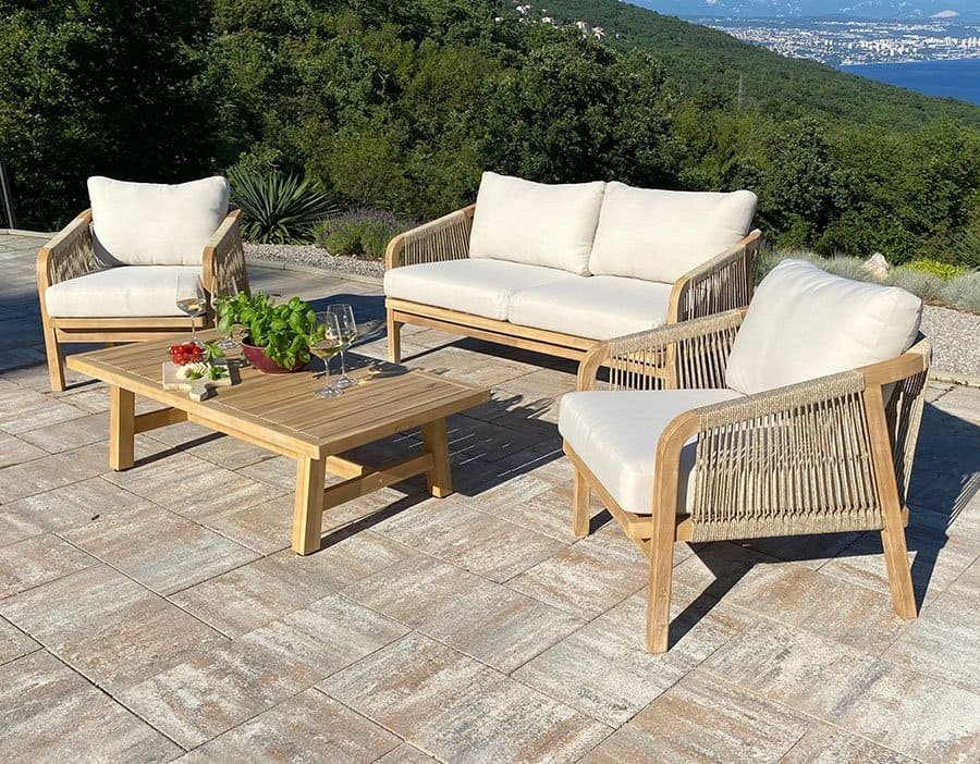 Rimini - это современная садовая коллекция из АКАЦИИ, выполненная в комбинации натурального веревочного плетения роуп, акации и бежевых подушек. Цвет натуральной твердой древесины представляет собой натуральный цвет с мелкой текстурой, придающий древесине приятный теплый вид. Rimini - это стиль и элегантность на Вашей веранде. Особенности: Материал - АКАЦИЯ, отделка экомаслом тик Light #01A. Веревочное плетение роуп 6 мм толщиной на спинке и подлокотниках излучает стиль в сочетании с деревянными поверхностями. Древесина, из которой изготовлена мебель, имеет сертификацию FSC (Forest Stewardship Council) - гарантия качества и происхождения древесины. Знак FSC - показатель того, что продукция происходит из леса, в котором ведется экологически и социально ответственное лесное хозяйство. Благодаря своей долговечности, прочности и устойчивости к вредителям эта древесина была создана для изготовления садовой мебели. Страна происхождения древесины: Вьетнам, Малайзия. Средняя плотность древесины: 550 кг/м3. Анодированная фурнитура из нержавеющей стали. Подушки в комплекте, ткань подушек - олефин, наполнитель - толстый поролон. Материалы устойчивы к УФ-излучению и другим погодным воздействиям. Цвет подушек - бежевый.Характеристики