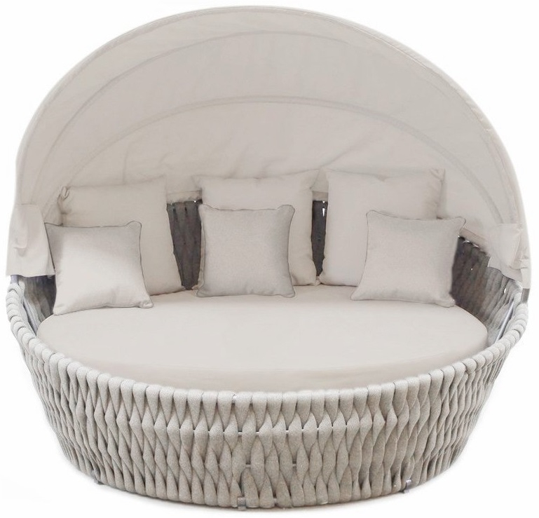 Современный и стильный плетеный лаунж-диван Samui добавит элегантность и стиль любому открытому пространству, где он используется. Идеально подходит для отдыха у бассейна, в саду, на террасе или во внутреннем дворике. Диван имеет каркас из алюминия, который оплетен высококачественным роупом ручной работы, что обеспечивает долговечность модели. А мягкие комфортные подушки дополняют изделие и гарантирует полное расслабление. Особенности: Каркас выполнен из алюминия 1.8 мм с порошковым покрытием (WT80019). Конструкция усилена дополнительной опорой внутри, что дает дивану возможность выдерживать нагрузку до 550 кг. Плетение выполнено из устойчивого к ультрафиолетовому излучению текстильного каната - роупа (CHN45-12). Подушка сиденья толщиной 100 мм выполнена из водонепроницаемой ткани (YB24-3020). В комплект включены 3 подушки для спины 600х600 мм и 3 декоративных подушки 450х450 мм. Навес выполнен из водонепроницаемой ткани. Угол наклона навеса 110°. Открыть инструкцию по уходу. Обратите внимание! Фабрика Tagliamento оставляет за собой право вносить изменения в собственные изделия в любой момент, которые сочтет необходимыми в целях улучшения своих изделий на основании нововведений и требований рынка.Характеристики