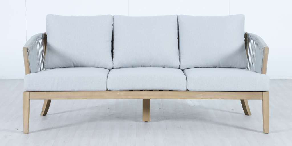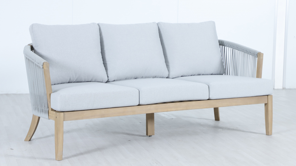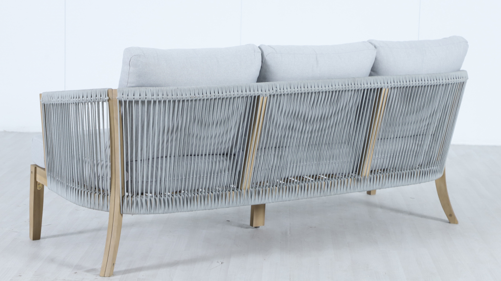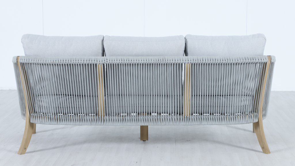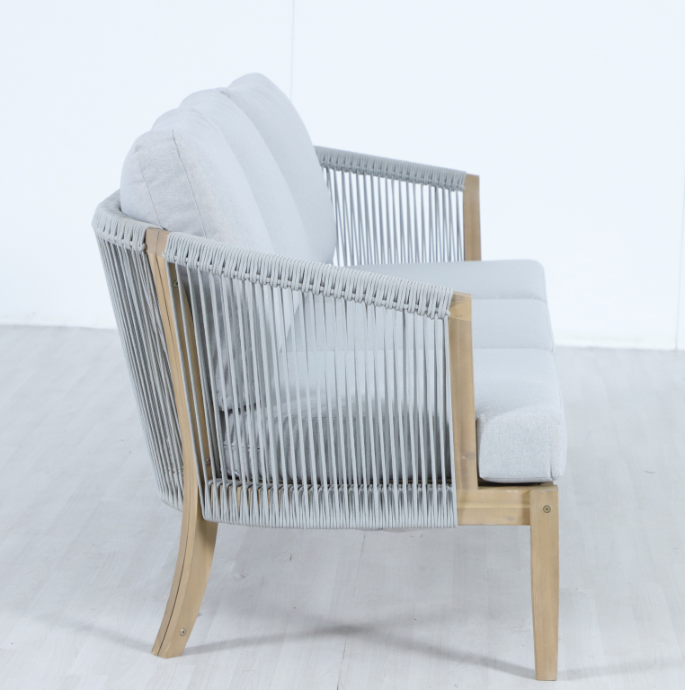 Вы можете купить Диван деревянный трехместный Tagliamento Veneto, светлый тик, серый оптом в нашем магазине, предложим цену с оптовой скидкой.