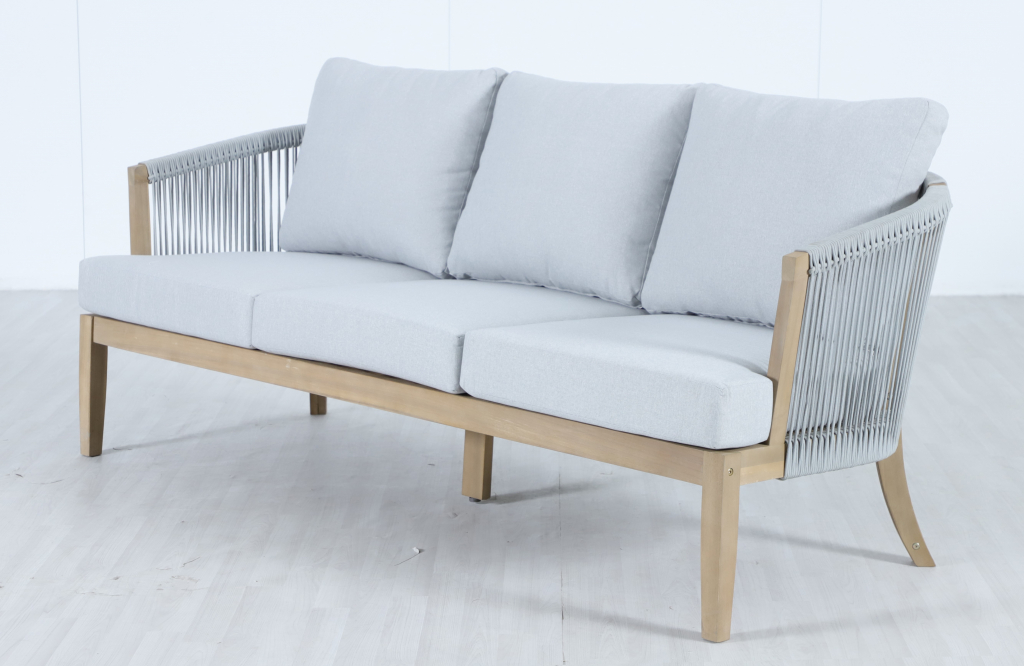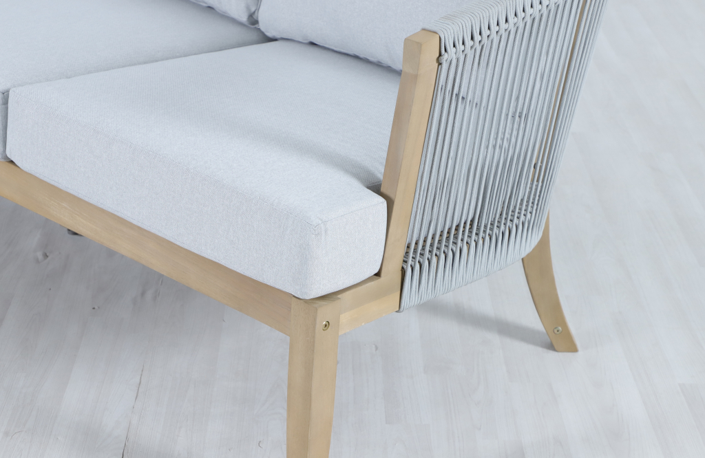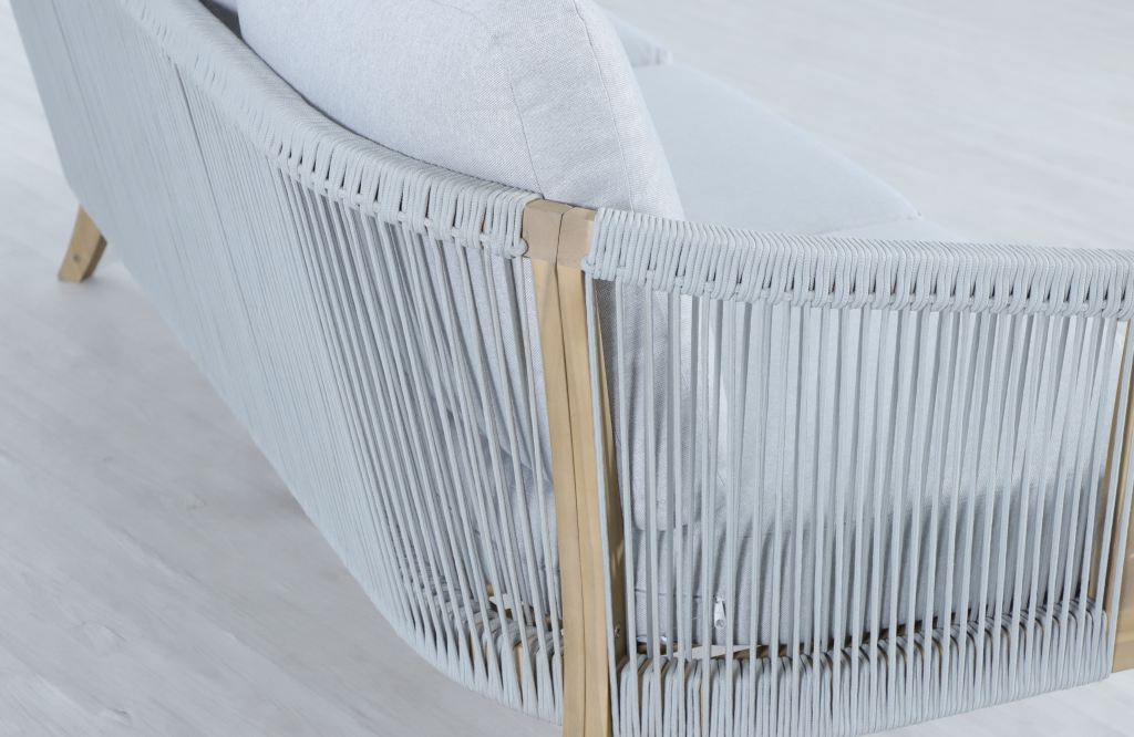 Коллекция Veneto - это линия уличной мебели из АКАЦИИ, объединяющая естественную теплоту дерева и стильные акценты из веревочного плетения роуп. Veneto создаёт цельную атмосферу на террасе, веранде или в зоне у бассейна. Концепция коллекции - эстетика природных материалов, продуманная эргономика и долговечность в условиях открытого воздуха. Особенности: Материал - АКАЦИЯ, отделка экомаслом тик Light #01A. Веревочное плетение роупVPR PR325 толщиной 6 ммна спинке и подлокотниках излучает стиль в сочетании с деревянными поверхностями. Древесина, из которой изготовлена мебель, имеет сертификацию FSC (Forest Stewardship Council) - гарантия качества и происхождения древесины. Знак FSC - показатель того, что продукция происходит из леса, в котором ведется экологически и социально ответственное лесное хозяйство. Благодаря своей долговечности, прочности и устойчивости к вредителям эта древесина была создана для изготовления садовой мебели. Страна происхождения древесины: Вьетнам, Малайзия. Средняя плотность древесины: 550 кг/м³. Анодированная фурнитура из нержавеющей стали. Подушки в комплекте, ткань подушек - олефин, наполнитель - толстый поролон. Материалы устойчивы к УФ-излучению и другим погодным воздействиям. Цвет подушек - светло-серый W1920-776 легко сочетается с любыми ландшафтными решениями.Характеристики