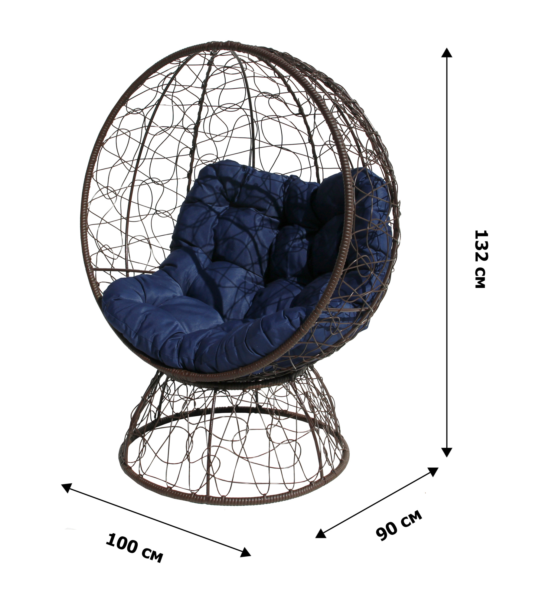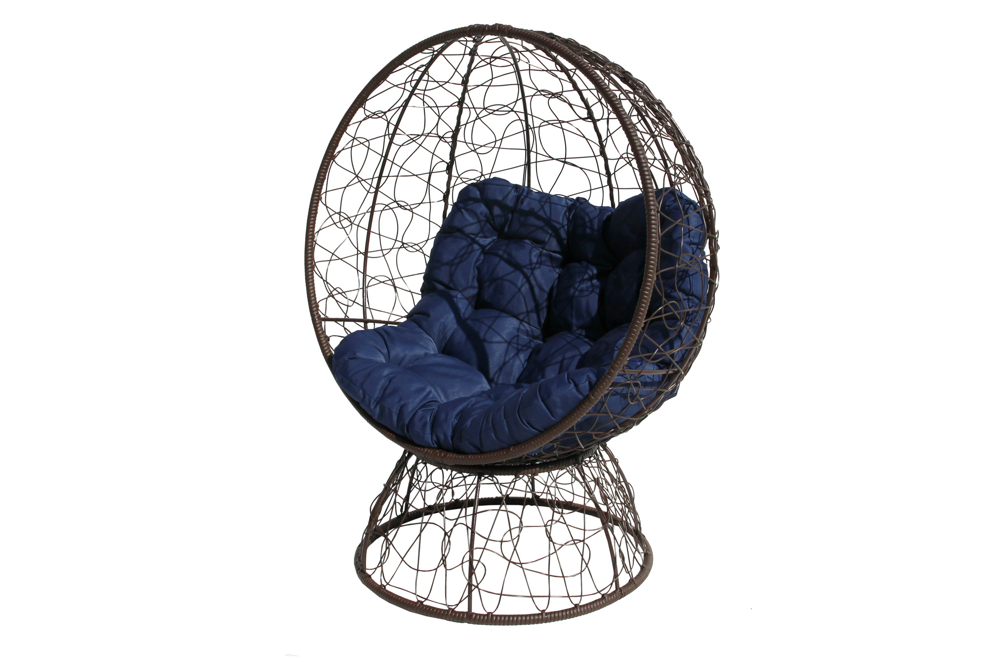 Кресло на подставке Garden story Николетта 1 уп (корзина коричневая, подставка коричневая, подушка синяя Т21) (M)