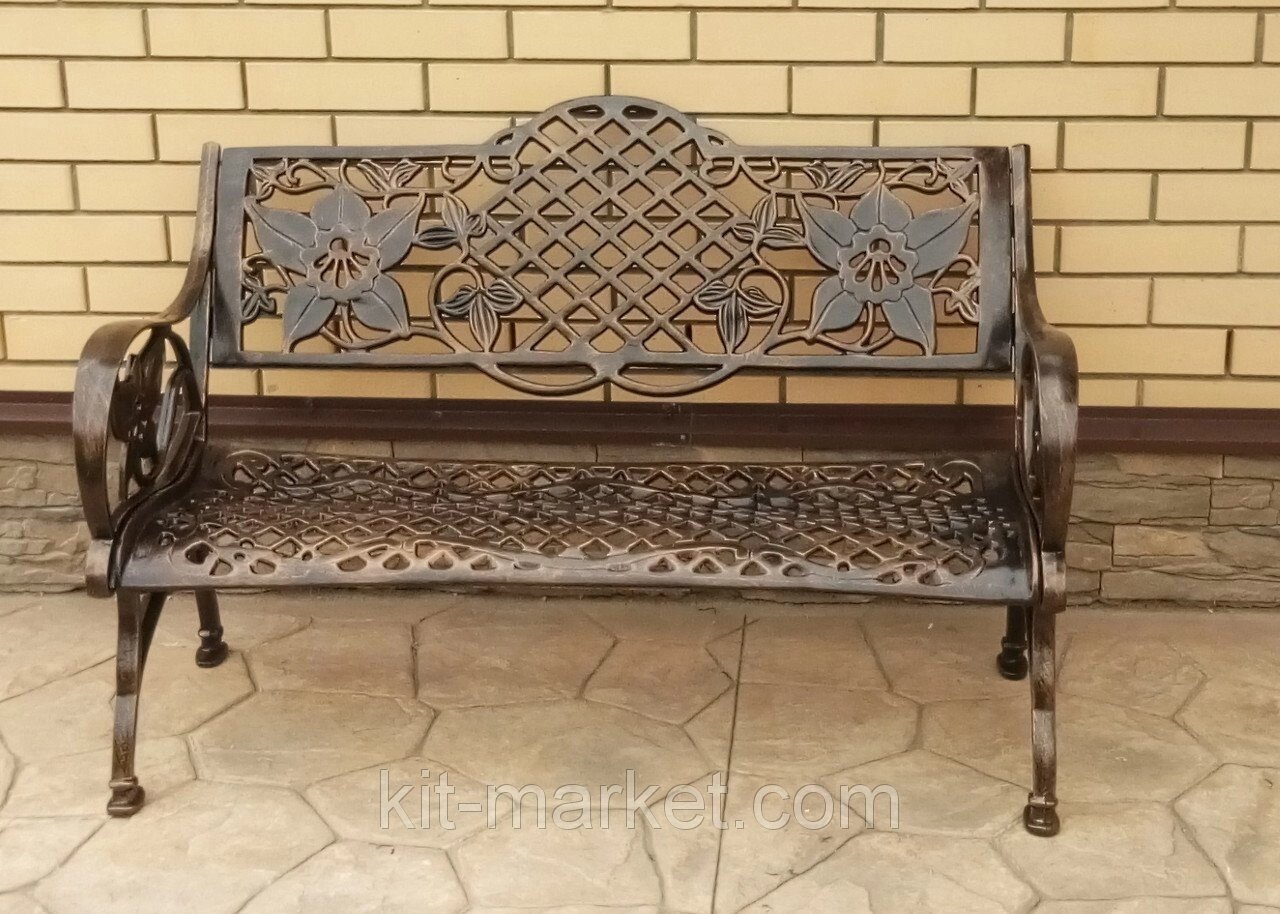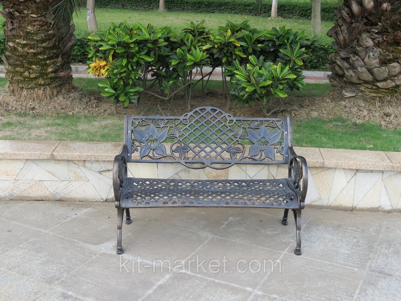 Садовая металлическая скамья Lily из литого алюминия добавит изыска к ландшафтному дизайну участка. Уличная литая мебель из алюминиевого сплава является практичным решением для террасы или беседки. Она не ржавеет, стойко переносит перепады температур и атмосферные осадки. Цвет: античная бронза (матовый черный + бронза).
