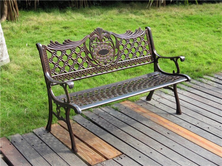 Металлическая скамья из литого алюминия станет красивым дополнением к ландшафтному дизайну вашего садового участка.. Данная литая мебель - это практичное решение для террасы или беседки, не ржавеет и спокойно переносит любые перепады температур окружающей среды. Цвет: античная бронза.