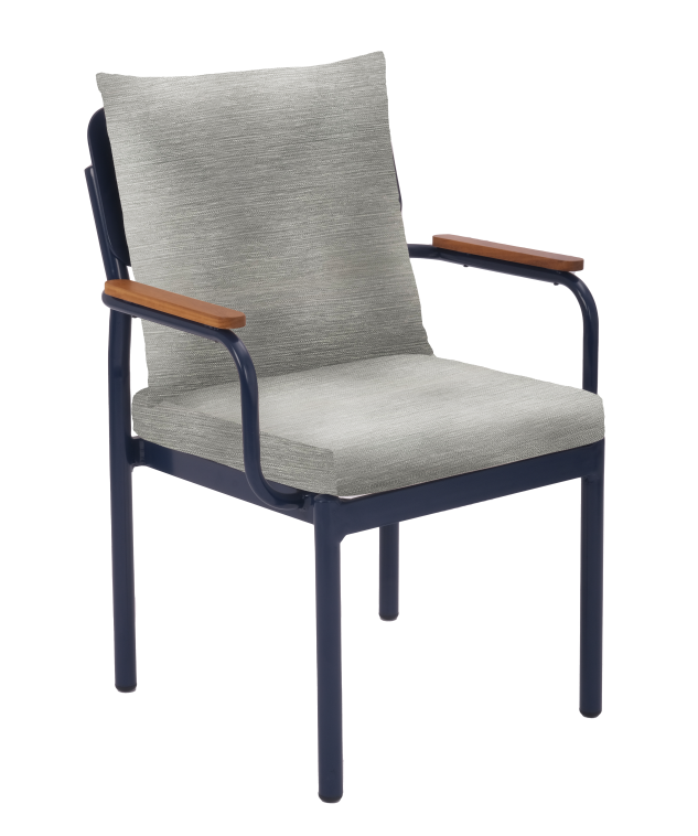 Габариты изделия (Ш/ГхДхВ) : 61,5х57х87 Цвет каркаса : синий Материал каркаса : алюминий Покрытие : краска порошковая полимерная Цвет поверхности : синий Дополнительно : ткань полиэстер 170 г., подлокотники из поливуда, подушка под спинку и сидение, толщина подушки 6 см, ткань сераяХарактеристики