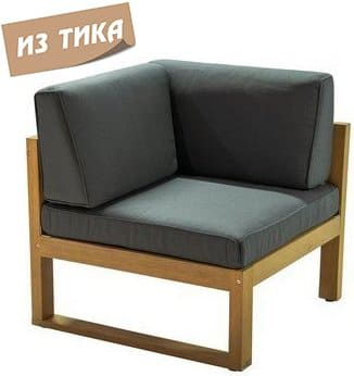 Прямые лаконичные линии мебели из коллекции Booka в сочетании теплого тона дерева и подушек в цвете темно-серый графит дают превосходные контрастные комплекты современной уличной мебели, которые по достоинству дополнят интерьер в стиле лофт или хайтек. Особенности: Модуль угловой. Материал - МАССИВ ТИКА. Тик - это лиственное дерево твердых пород, которое происходит из высокогорья. Никакая другая древесина не обладает такой исключительной прочностью и долговечностью, как тик. Его уникальная текстура и кожистый запах обусловлены высоким содержанием масла. Эти характеристики в сочетании с высокой плотностью древесины предотвращают коробление и гниение, позволяя мебели оставаться на открытом воздухе в любых условиях без ухода или защитных средств. Древесина тика сертифицирована INDO TLAS - SVLK и FSC. Знак FSC - показатель того, что продукция происходит из леса, в котором ведется экологически и социально ответственное лесное хозяйство. Страна происхождения древесины: Индонезия. Анодированная фурнитура из нержавеющей стали. Подушки в комплекте, ткань подушек - олефин, цвет подушек темно-серый графит.Характеристики