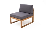 Коллекция BOOKA. Материал — массив акации, отделка экомаслом под натуральный тик. Анодированная фурнитура из нержавеющей стали. Подушки в комплекте, ткань подушек – Olefin, цвет подушек темно-серый графит.