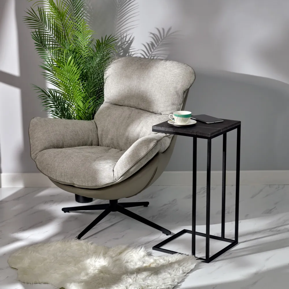 Прочная металлическая ножка черного цвета и обивка в трендовых цветах придают креслу стильный и элегантный вид.