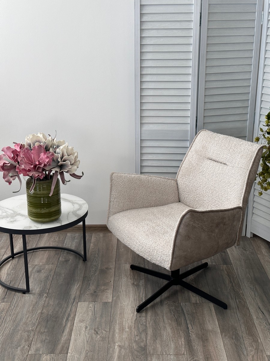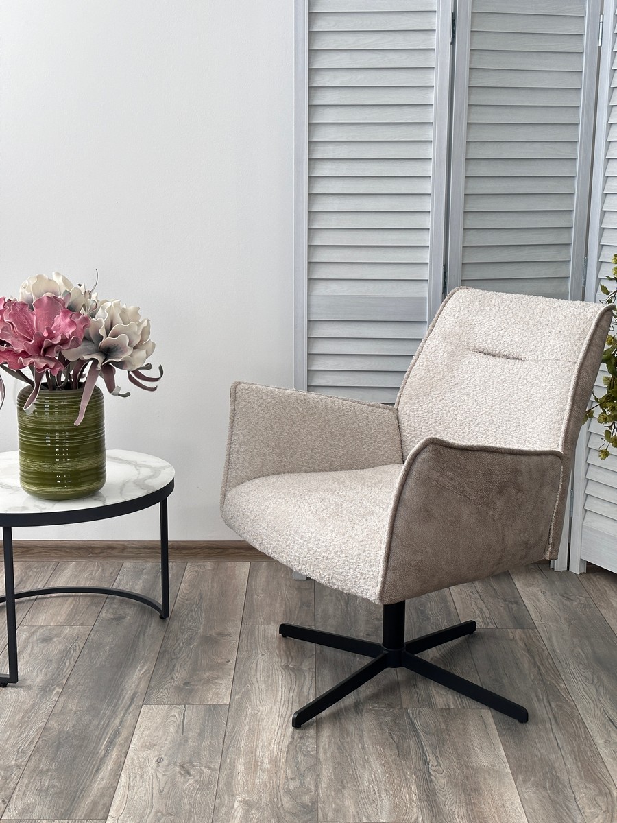 Кресло М-City DISAUR Белфаст (Belfast) поворотный на 360 градусов, Xd841-02 Бежевый, букле, Gino-101 Бежевый, ткань, Черный