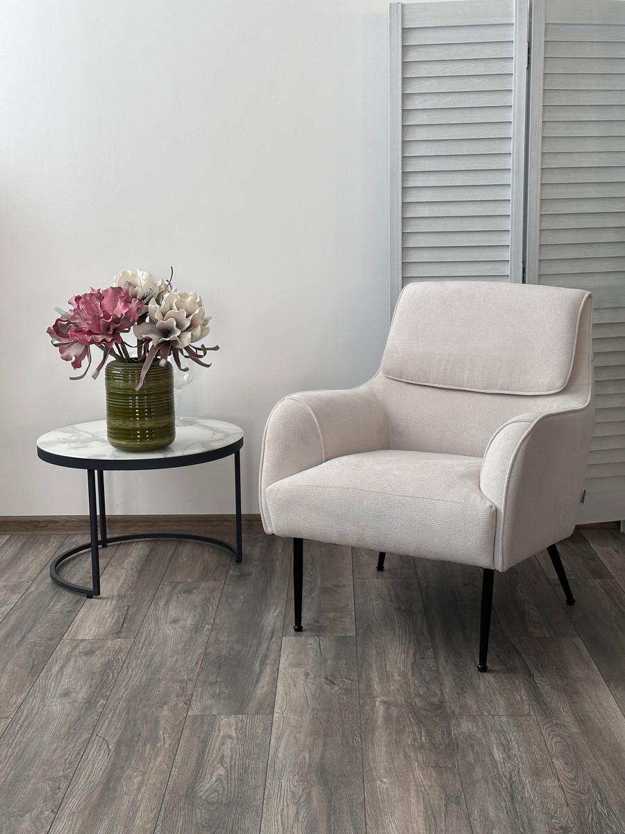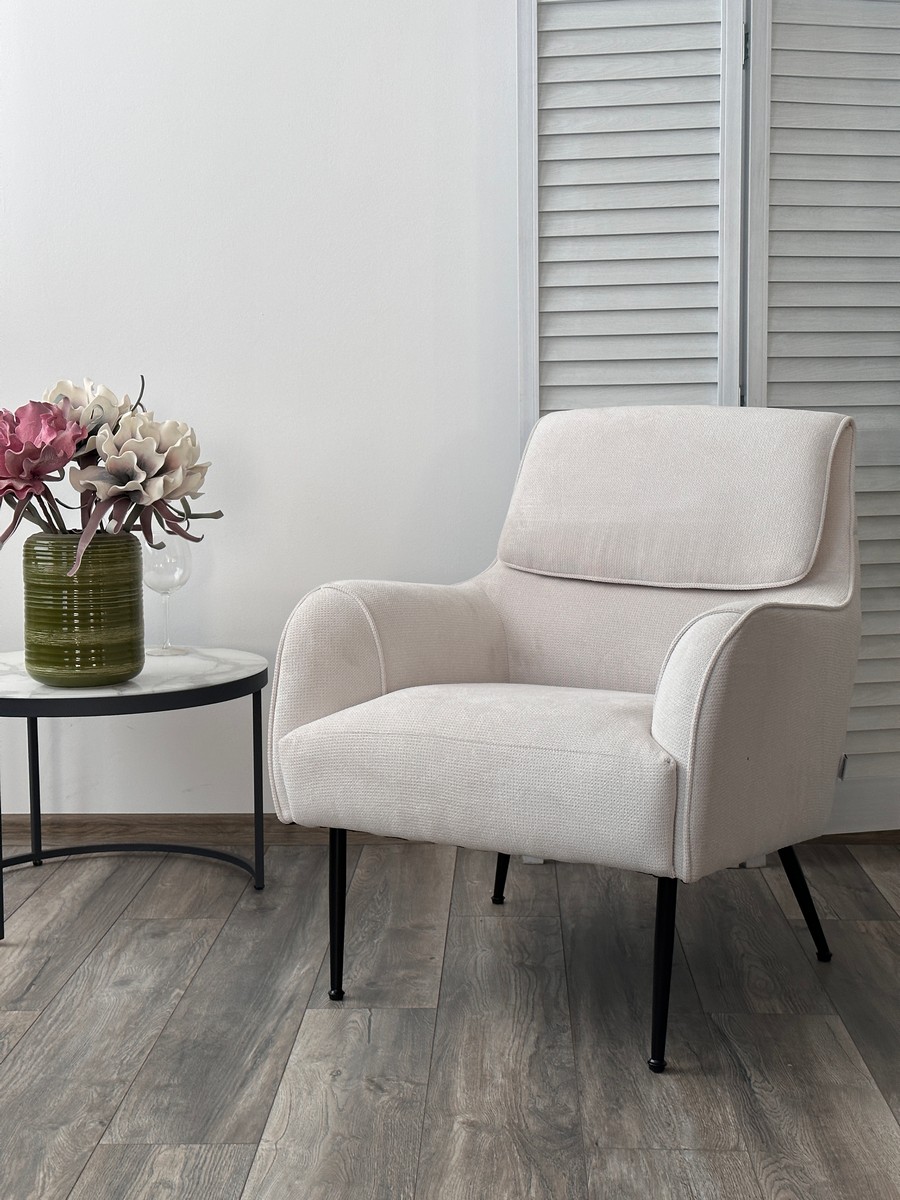 Кресло М-City DISAUR Магда (Magda) Cato-01 Белый, ткань, Черный каркас