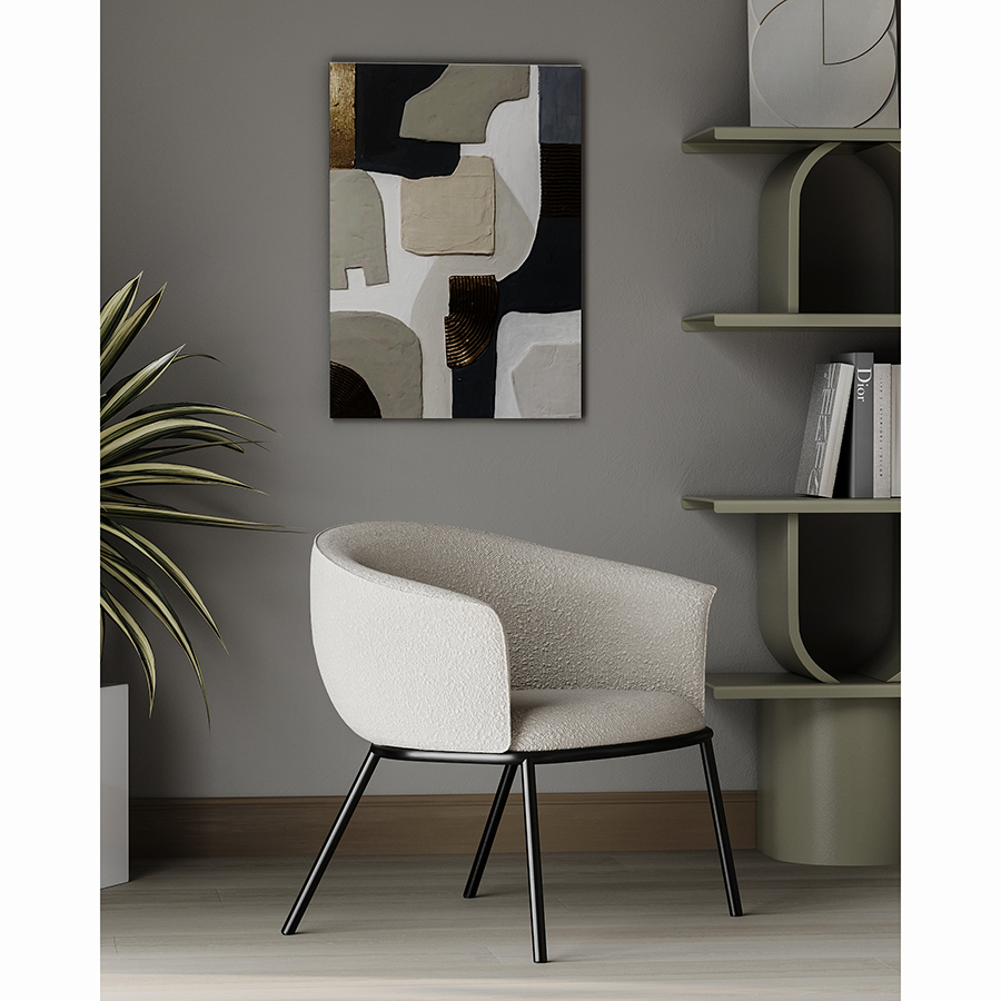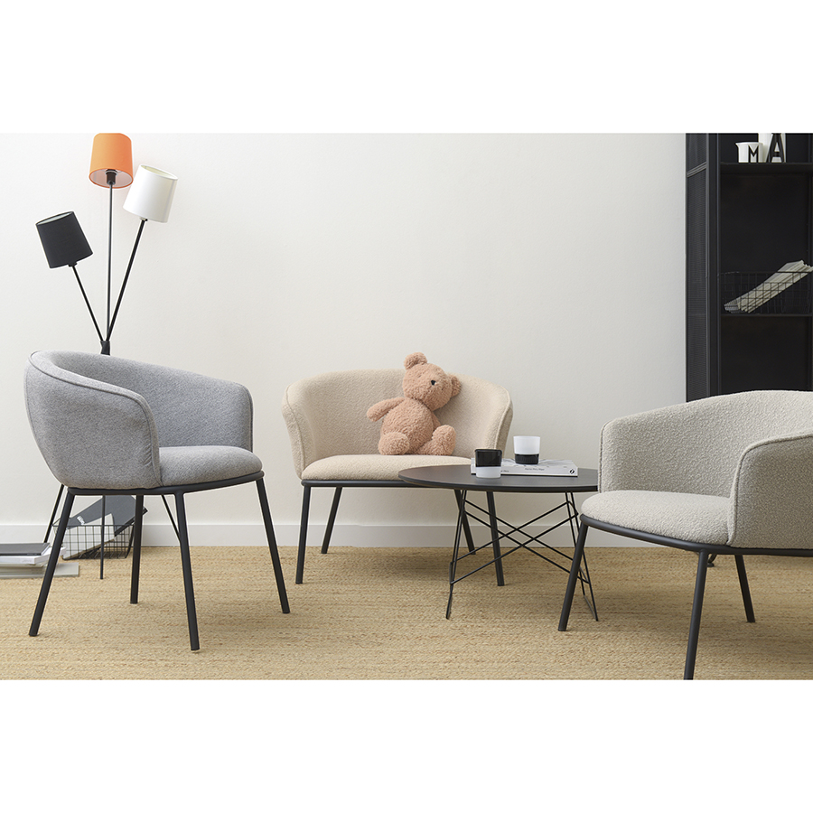 Лаунж-кресло Paal удачно сочетает в себе элементы современного и классического стилей. Изюминку модели придает сплошная спинка, плавно переходящая в подлокотники, и буклированная обивка. Такой дизайн обеспечивает не только оригинальный вид, а также комфорт при сидении и приятные тактильные ощущения. Светлая мебель с лаконичным силуэтом идеально вписывается в интерьер гостиной, рабочего кабинета или спальни, оформленных в скандинавском стиле, лофт, эклектика, фьюжн, неоклассика и др.Материалы: 100%, полиэстер, фанера, железо, поролон. Размеры: 74х70х65 см. Высота сиденья: 41 см. Ширина сиденья: 53 см. Глубина сиденья: 47 см. Высота спинки: 33 см. Ширина спинки: 53 см. Максимальная нагрузка: 120 кг. Цвет: бежевый.