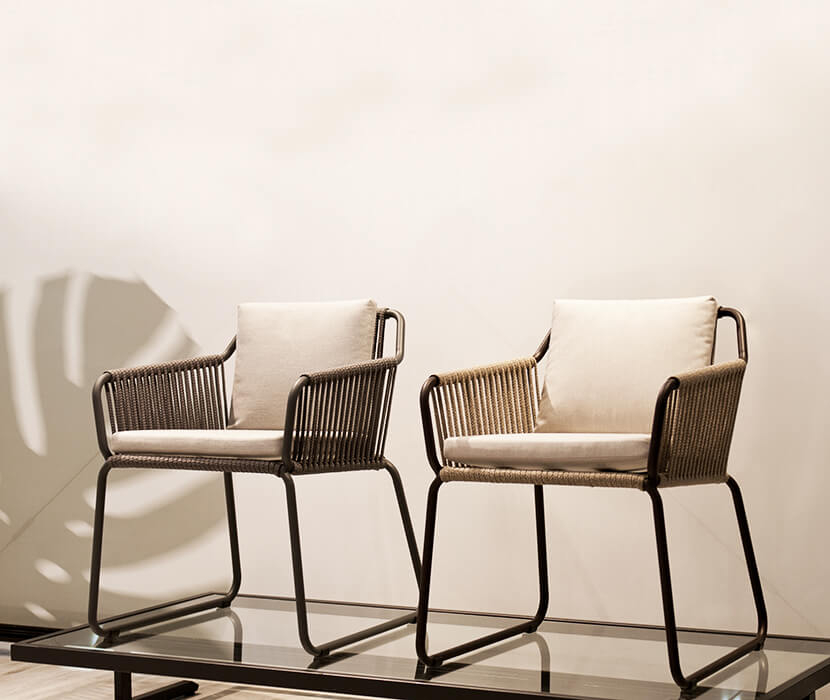Кресло Riva-K сочетает в себе прочный металлический каркас и канатное плетение спинки и подлокотников.Мягкие подушки на сиденье и спинке дополнят комфортный отдых. Это кресло идеально подходит для создания лаунж или обеденной зоны в саду или на террасе. Чрезвычайно удобное и эргономичное кресло Riva-K – это смесь красоты, долговечности и практичности. Особенности: Алюминиевый каркас с матовым порошковым покрытием. Материал пригоден для наружного использования и устойчив к воздействию окружающей среды. Плетение спинки и подлокотников выполнено из роупа – специальной веревки, предназначенной для наружного использования. Подушки на сиденье и спинке выполнены изводонепроницаемого100% акрилового окрашенного волокна Sunbrella®. Обивка может быть выполнена из материалов категорий: A (Natte), C (Panama, Eternal, Nobless, Tetfab), B (Nest). Подходит для использования на свежем воздухе. Возможные цвета указаны в палитре на сайте.Подробнее ознакомиться с палитрой PAPATYA. Открыть технические характеристики. Цена на сайте указана за модель с подушками на сиденье и спинке с обивкой категории B. Для уточнения всех возможных вариантов материала и цвета данного изделия обращайтесь к нашим менеджерам.Характеристики
