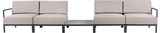 Четкие линии, естественные оттенки и технологичность при разработке изделий характеризуют коллекцию Slim. Серия модульных элементов с тонким каркасом придаст уюта в пространства благодаря своему спокойному и минималистичному дизайну. Изделия обладают прочностью и устойчивостью благодаря каркасу из алюминия и нержавеющей стали. А за счет профессиональной сетчатой ткани подушки сохраняют свой первоначальный цвет в течение многих лет. Коллекция Slim подходит для внутреннего и наружного применения благодаря катафорезу металлического каркаса (создается защитный слой, увеличивается сопротивляемость воздействию коррозии). Особенности: Каркас выполнен из алюминия и нержавеющей стали с катафорезной обработкой и порошковым покрытием. Столешница выполнена из компакт-ламината HPL с плоскими краями. Обивка подушек может быть выполнена из ткани Batyline Eden. Возможные цвета указаны в палитре на сайте. Подробнее ознакомиться с палитрой PAPATYA. Состав комплекта: Модуль центральный с подушками, размер: 740х740х687 мм - 4 шт. Подлокотник, размер: 575х376 мм - 2 шт. Столик ламинированный журнальный, размер: 740х740х210 мм - 1 шт. Открыть технические характеристики коллекции. Для уточнения всех возможных вариантов материала и цвета данного изделия обращайтесь к нашим менеджерам.Характеристики