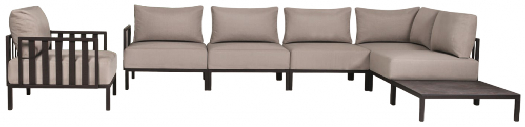 Slim Stripe – это модульная коллекция, в которой элементы можно комбинировать в неограниченном количестве конфигураций. Ее с легкостью можно разместить в маленьких и больших пространствах, организовывая 2-местный, 3-местный диван или угловой диван в зависимости от потребностей. Модули Slim Stripe имеют прочный металлический каркас и различные цветовые решения ткани для обивки подушек. Серия полностью подходит для обустройства открытых пространств и закрытых площадок благодаря катафорезу металлического каркаса (создается защитный слой, увеличивается сопротивляемость воздействию коррозии). Особенности: Каркас всех модулей выполнен из стали с катафорезной обработкой и порошковым покрытием. Подлокотники выполнены из алюминия. Обивка подушек выполняется из ткани Batyline Eden. Возможные цвета указаны в палитре на сайте.Подробнее ознакомиться с палитрой PAPATYA. Состав комплекта: Модуль центральный, размер: 740х740х687 мм - 4 шт. Модуль угловой, размер: 740х740х687 мм - 1 шт. Подлокотник металлический: 575х376 мм - 1 шт. Приставной столик: 740х740х210 мм - 1 шт. Посмотреть технические характеристики. Для уточнения всех возможных вариантов материала и цвета данного изделия обращайтесь к менеджерам.Характеристики