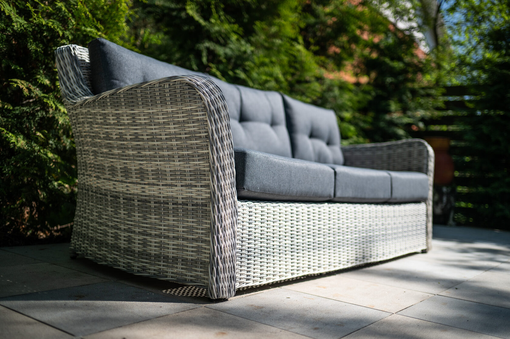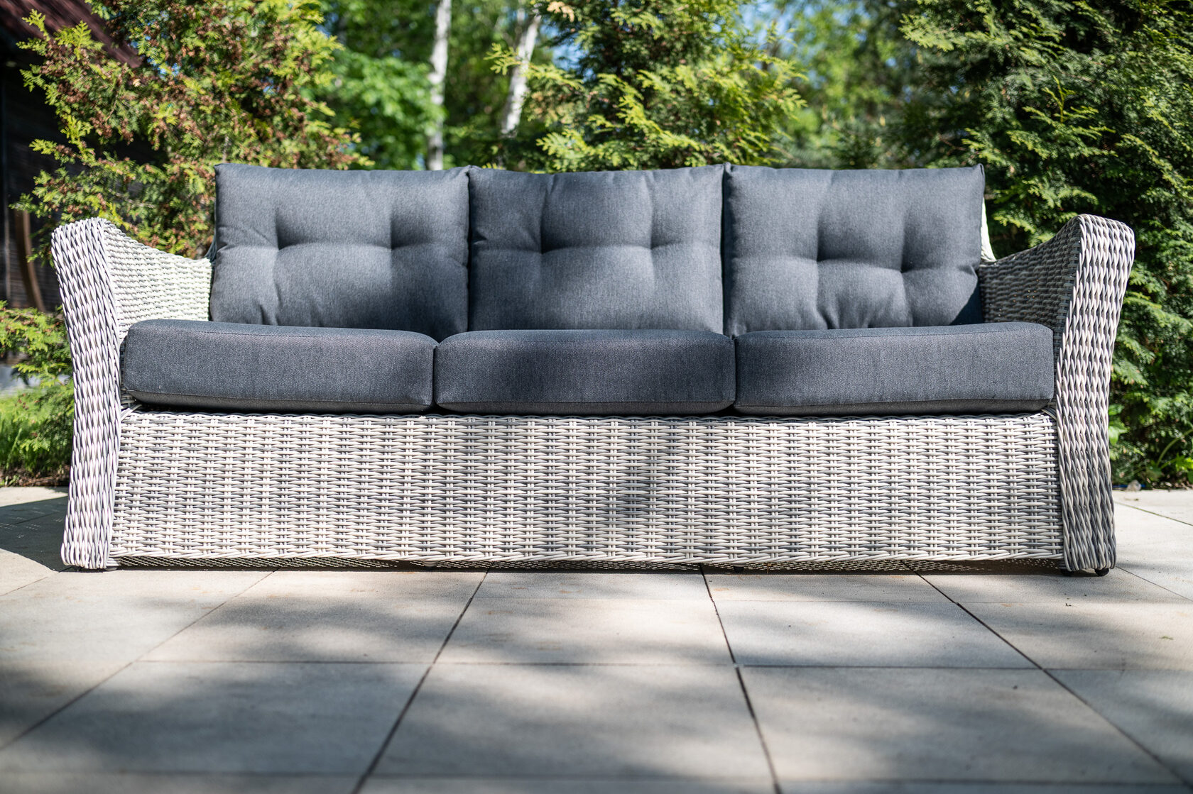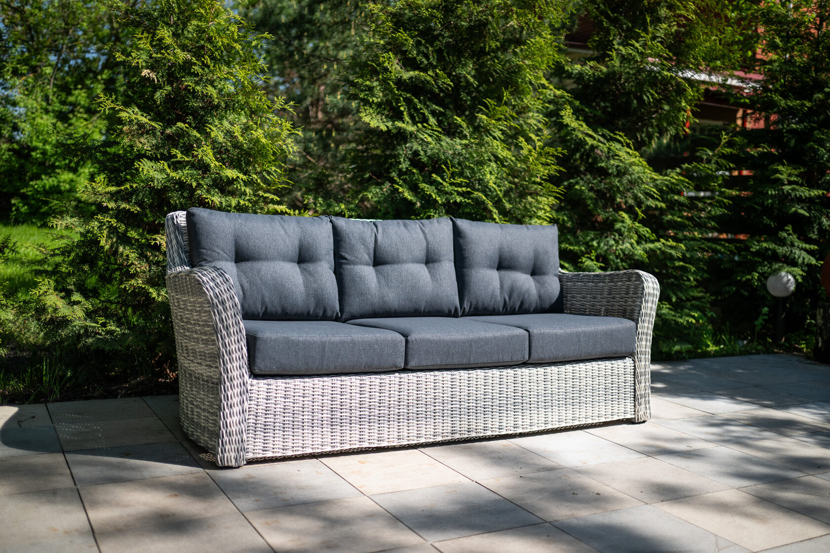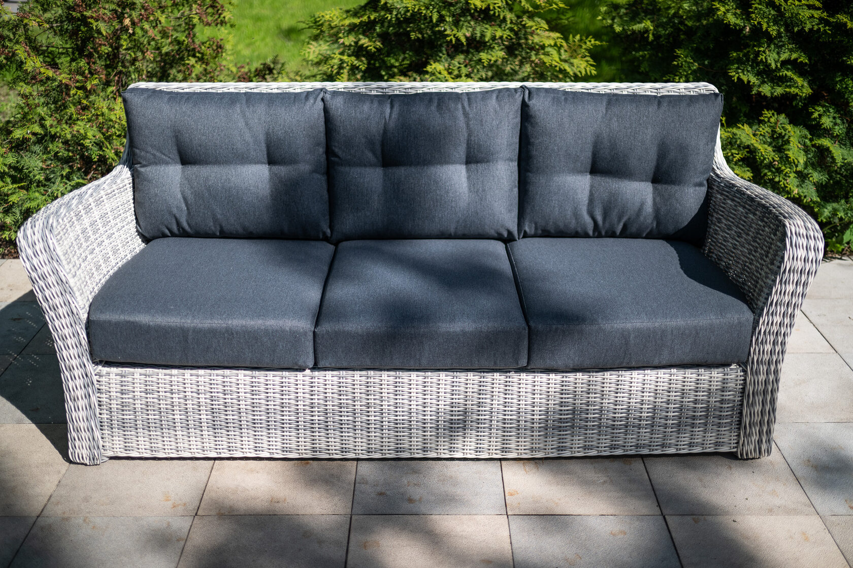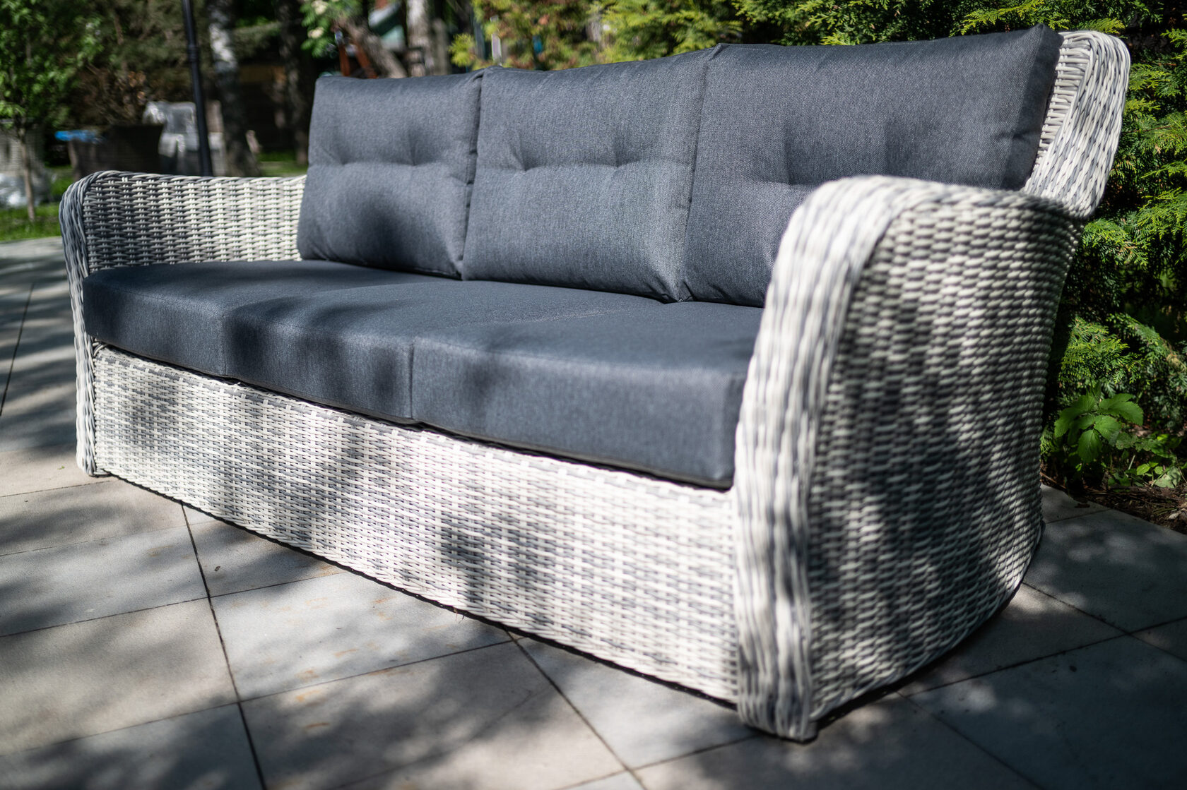 ВЕНЕЦИЯ 3-х местный диван можно устанавливать в самых разнообразных местах: на летних верандах, садовых площадках и под открытым небом. Это отличное приобретение для тех, кто предпочитает с максимальным комфортом отдыхать в загородном доме. Диван выполнен из искусственного ротанга и из прочного алюминиевого каркаса. В комплекте идут мягкие подушки (чехлы съемные) с водоотталкивающей пропиткой при небольшом дожде. Предоставляем Вам серию мебели «Венеция», которую можно комбинировать между собой и создавать свой собственный стиль в интерьере. Материал: Искусственный ротанг Вид мебели: Диван. Размер: 222*90*86 см Вес: 43кг Выдерживаемый вес — 150 кг Материал дивана: искусственный ротанг/алюминий Материал подушек: 100% polyester с наполнителем Чехлы на подушках съемные Цвет подушек: темно-серые Комплектация: 1шт - 3-х местный диван, подушки.Характеристики
