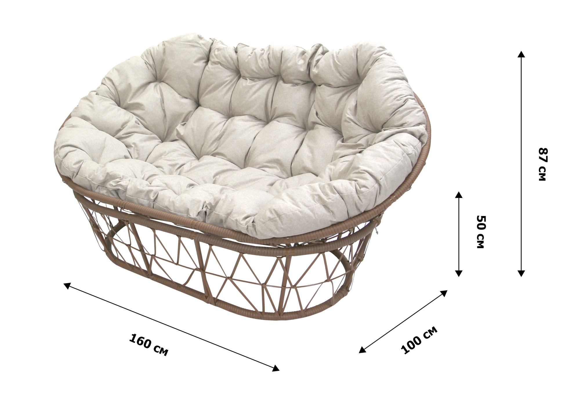 Габариты изделия (Ш/ГхДхВ) : 100х160х87 Цвет каркаса : бежевый Материал каркаса : сталь Покрытие : краска порошковая полимерная Цвет чехла мягкого элемента/матраса : бежевый Материал чехла мягкого элемента : рогожка, Tesla cream Наполнитель мягкого элемента/матраса : синтепух Цвет поверхности : бежевый Материал поверхности : ротанг искусственный Допустимая нагрузка : 180 Страна производства : РОССИЯХарактеристики