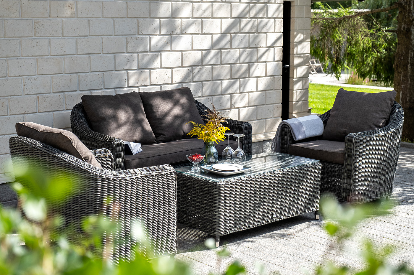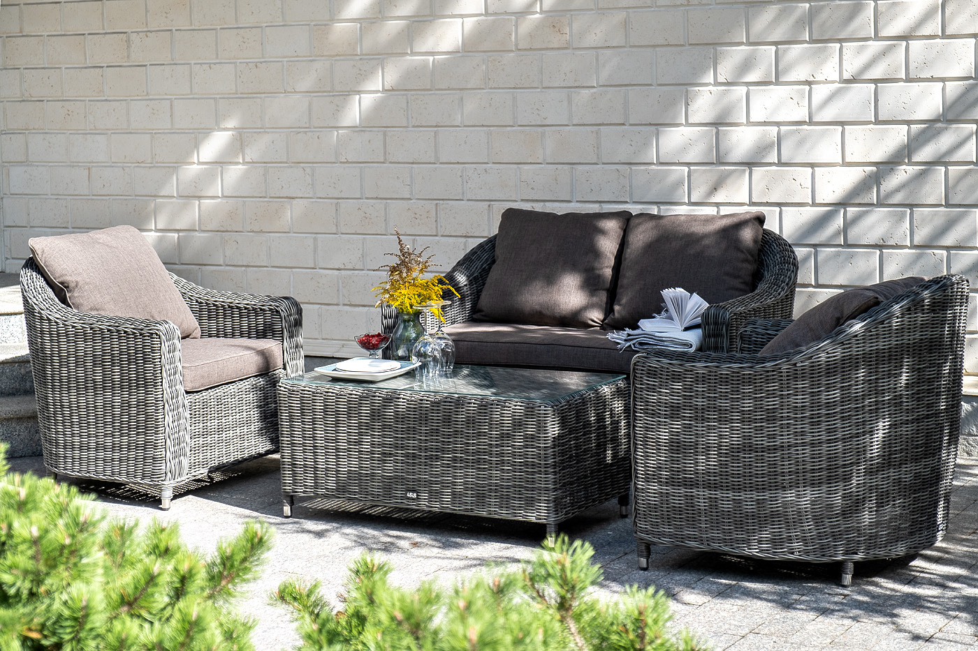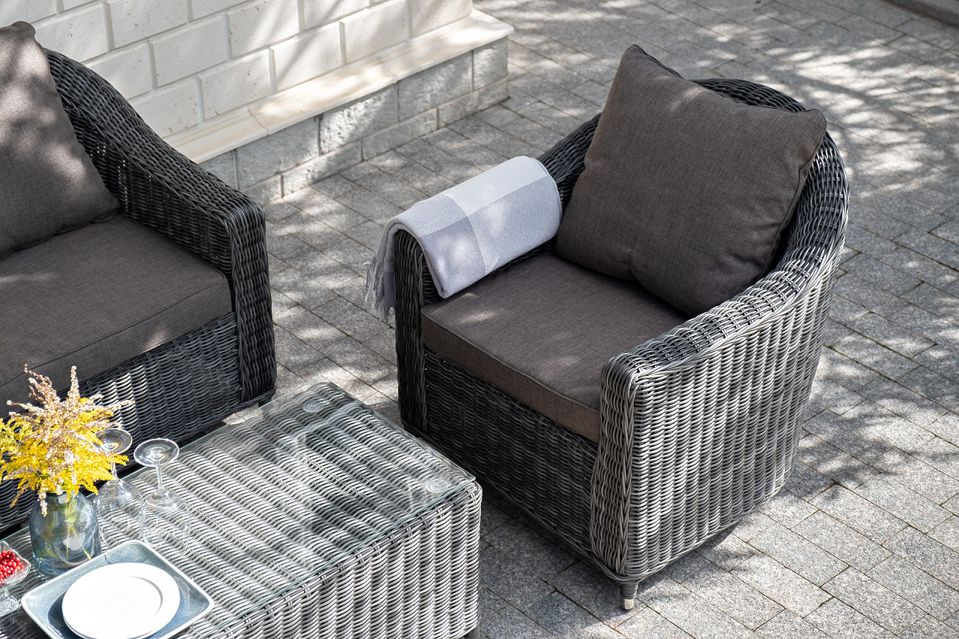 Диван из искусственного ротанга графитового цвета «Кон Панна» дает возможность комфортно расположить две персоны благодаря комплектным подушкам из полиэстера с влагоотталкивающей пропиткой. При производстве садового дивана был использован прочный алюминиевый каркас, который вручную оплетен круглым искусственным ротангом. Габариты: 1370×800×800 мм.Бренд | 4SIS |