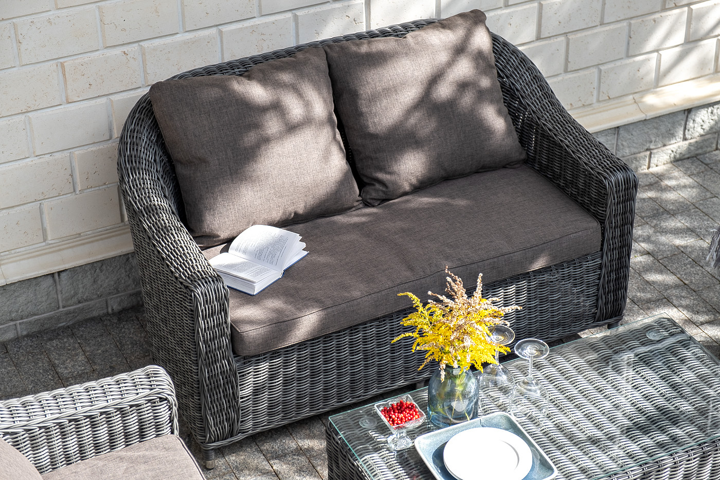 "Кон Панна" диван из искусственного ротанга двухместный, цвет графит