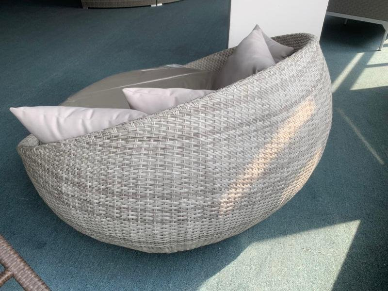 Лаунж диван Shell является прeкрасным решением для оформления пляжа или летних веранд. Округлая форма лаунж дивана наполняет интерьер мягкостью и безмятежностью, это идеальный вариант для релакса. Мебель сделана вручную. Подушки выполнены из водоотталкивающей ткани (акрил), на молнии. При заказе от 20 шт. можно менять размер изделия и согласовать различные цвета для текстиля и ротанга. Открыть инструкцию по уходу. Обратите внимание! 1) Фабрика Tagliamento оставляет за собой право вносить изменения в собственные изделия в любой момент, которые сочтет необходимыми в целях улучшения своих изделий на основании нововведений и требований рынка.Характеристики